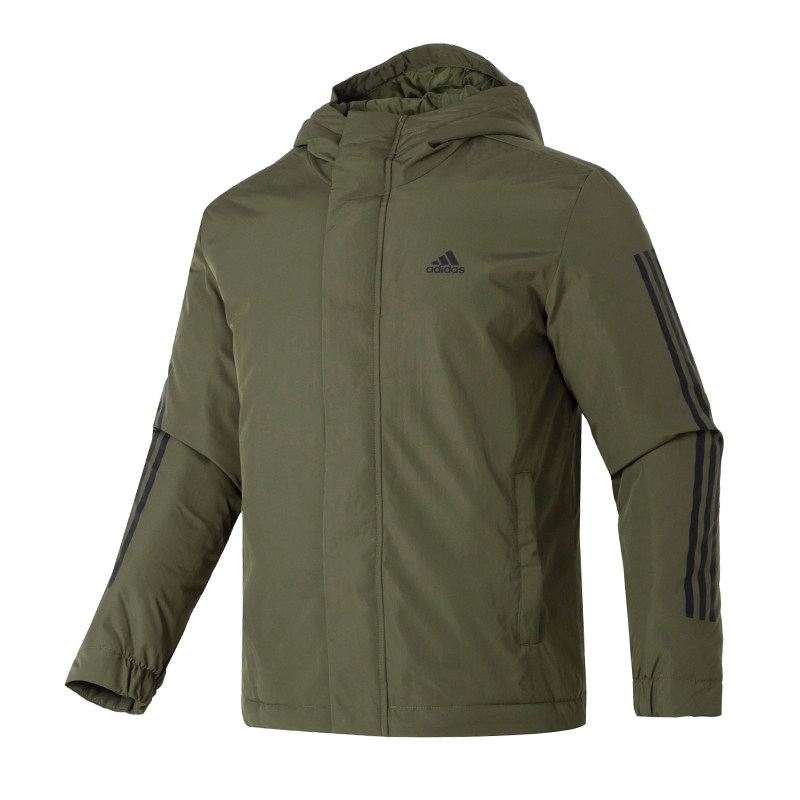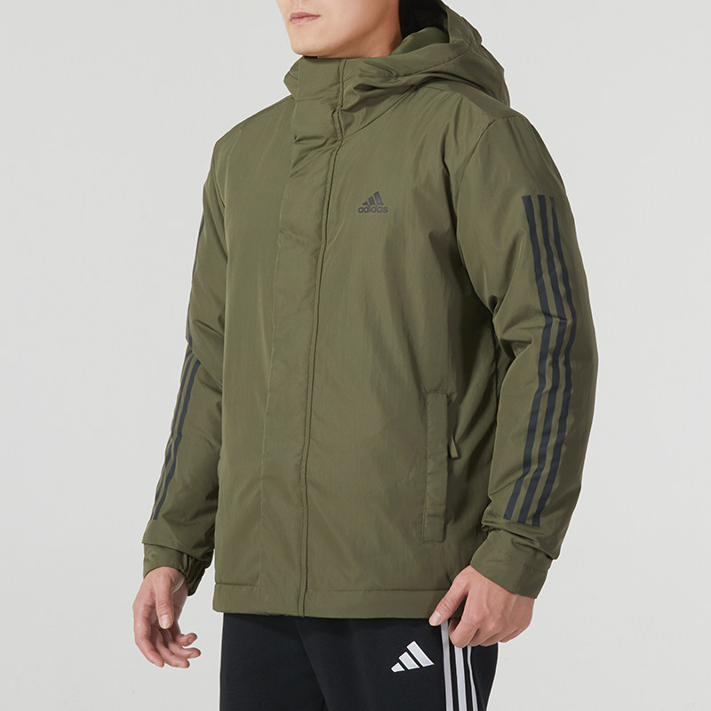 阿迪达斯绿色棉服男2025秋冬新款保暖棉衣外套棉袄运动服男IP2535