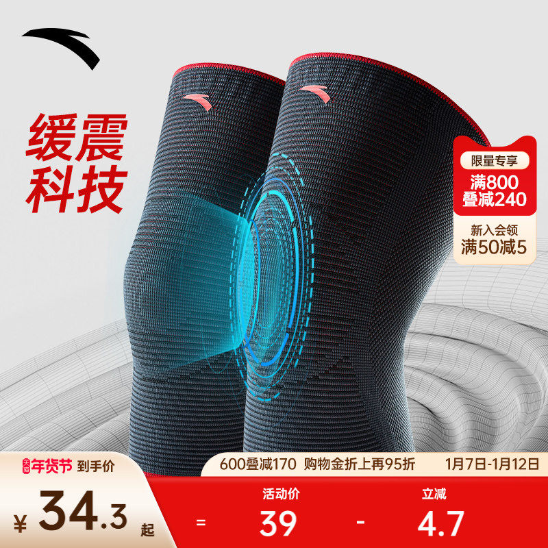 安踏运动护膝专业薄款半月板损伤保护高弹力减震透气跑步膝盖护具