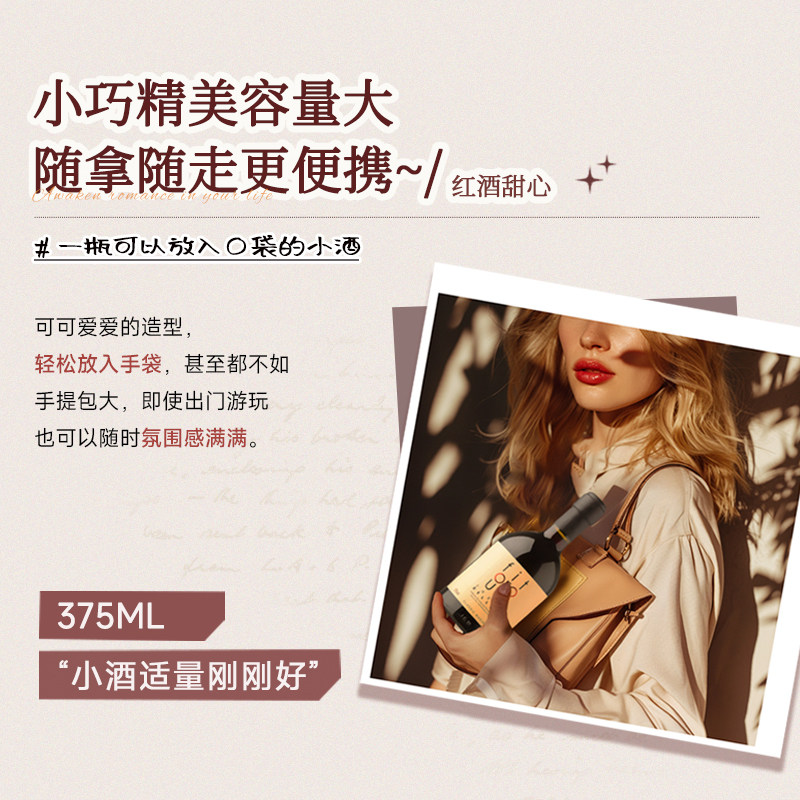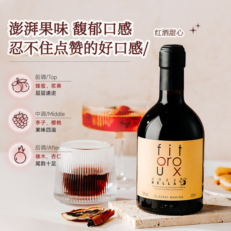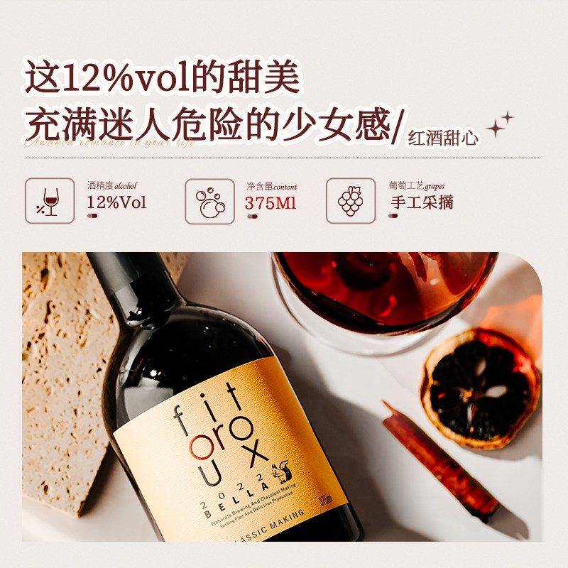 法国进口菲特瓦甜红葡萄酒女士微醺晚安红酒自饮单支甜红375ml