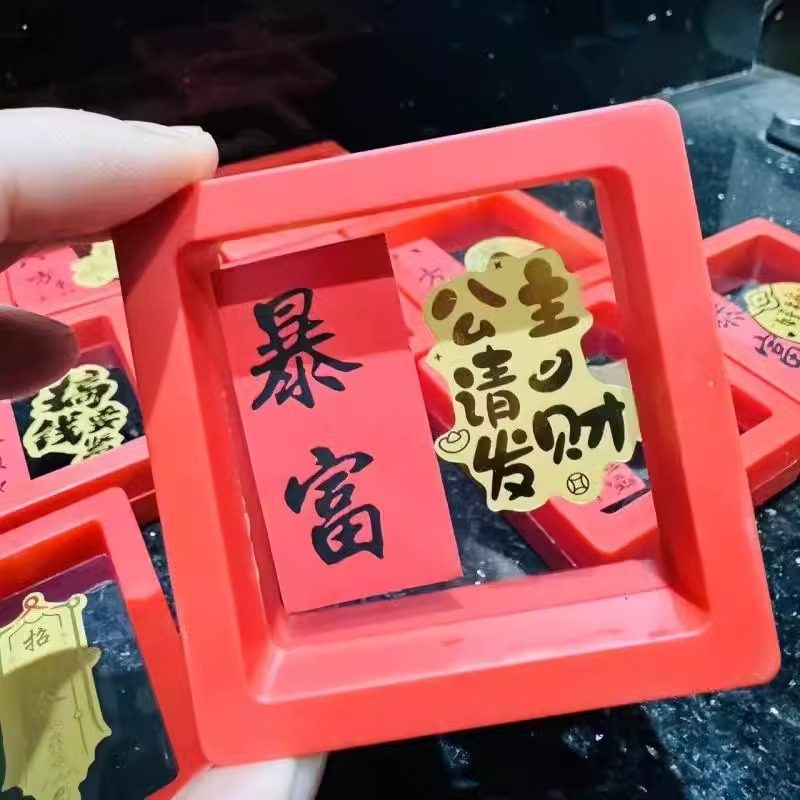 官方黄金手机贴纸足金999公主请发财搞钱要紧好柿连连招财护身符g