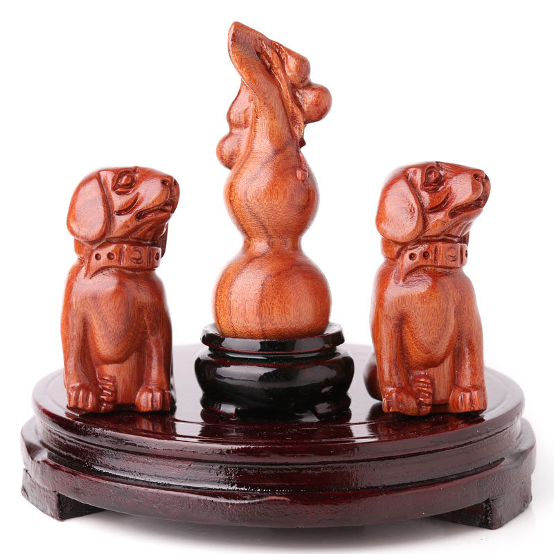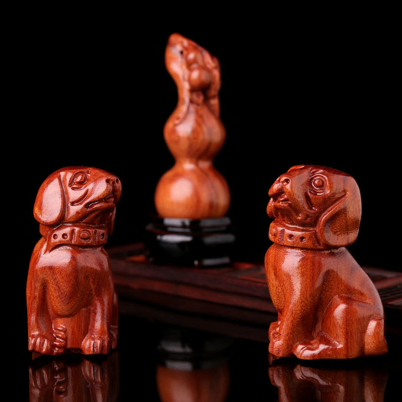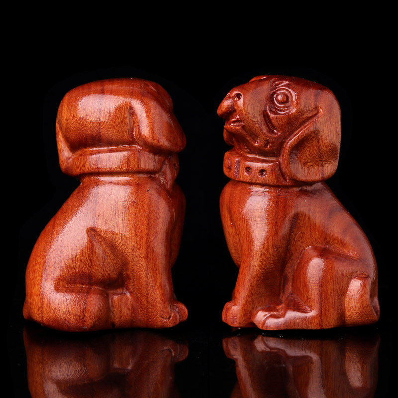 花梨木雕狗摆件十二生肖狗实木家居客厅电视柜办公装饰红工艺品