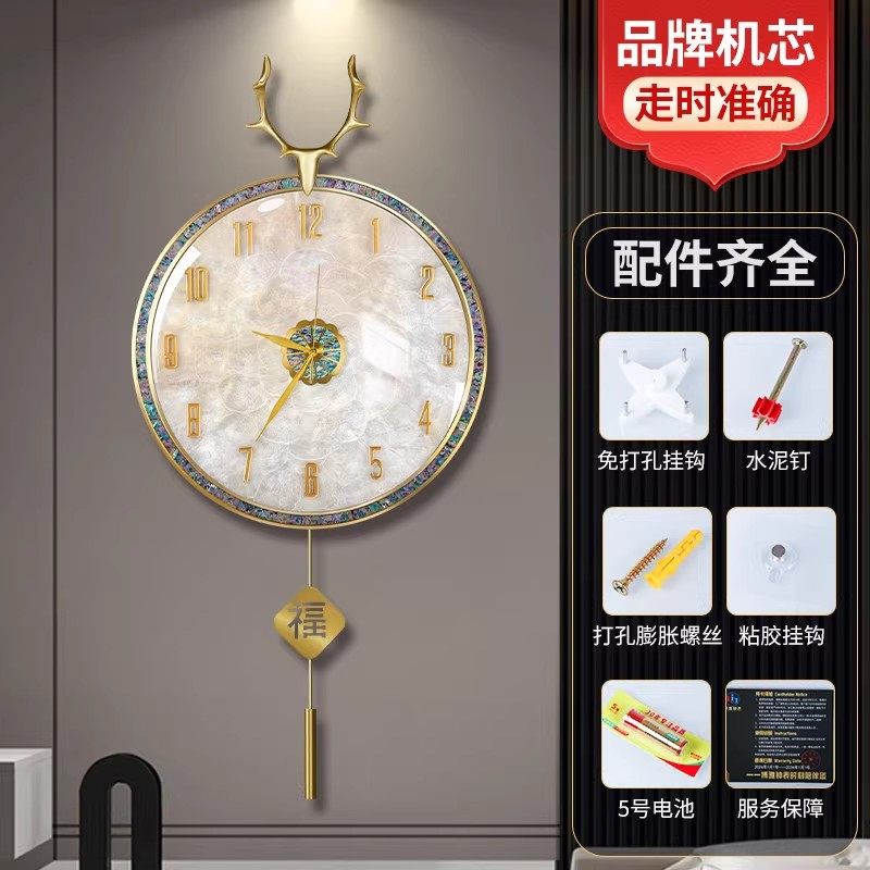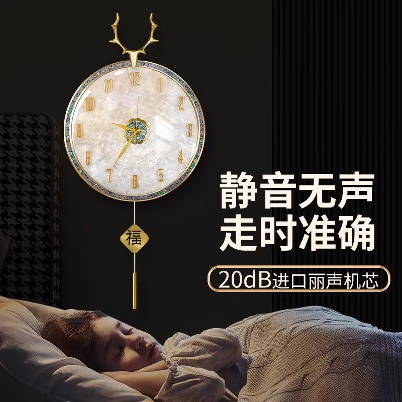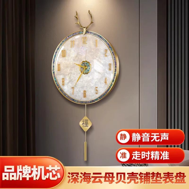 静音挂钟表新款高端黄铜贝壳挂钟现代简约大气创意轻奢风机芯餐厅