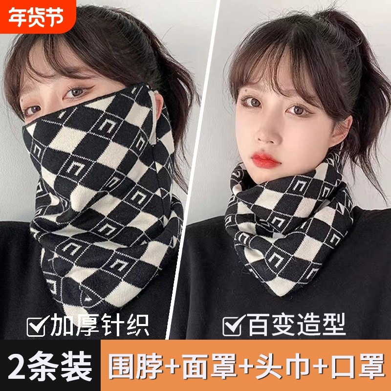 围脖冬季女韩版百变挂耳面罩保暖护颈脖套百搭围巾加厚防风寒口罩