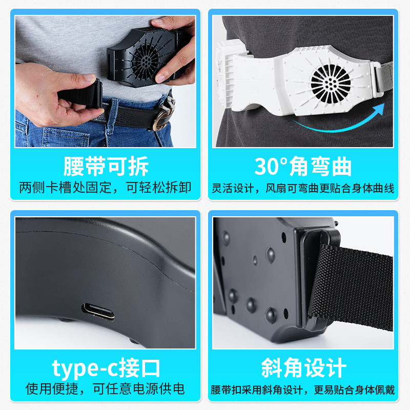 挂腰风扇可携式随身制冷充电迷你户外露营超静音穿戴降温神器工地