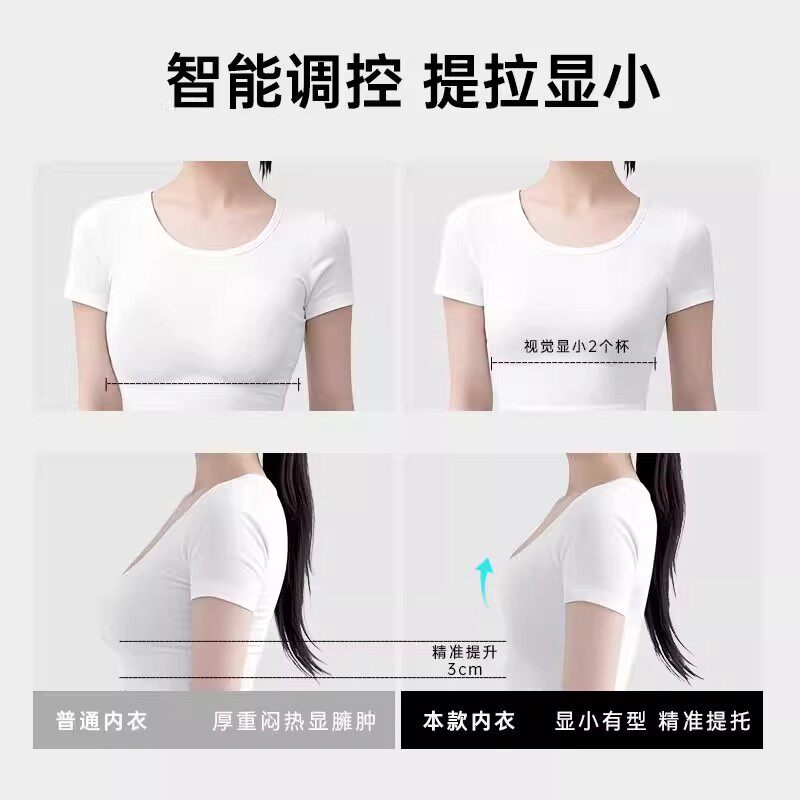 无痕内衣女小胸聚拢夏季薄款运动一体美背心式固定杯无钢圈文胸罩