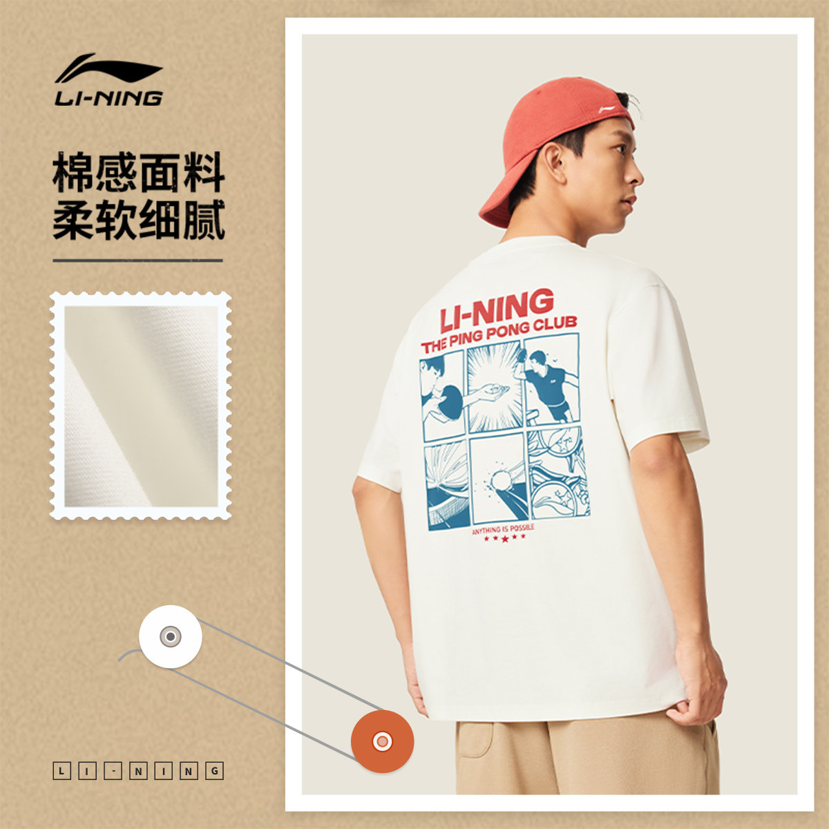 李宁短袖T恤男士新款潮流半袖情侣圆领宽松夏季休闲上衣女运动服