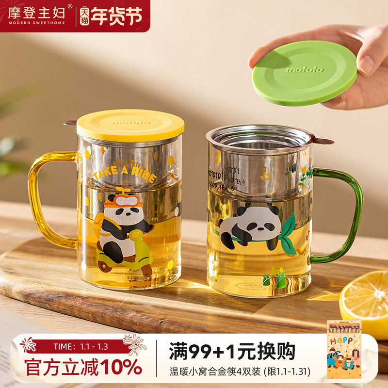 摩登主妇mototo熊猫泡茶杯家用玻璃杯子女新款2026水杯茶水分离杯