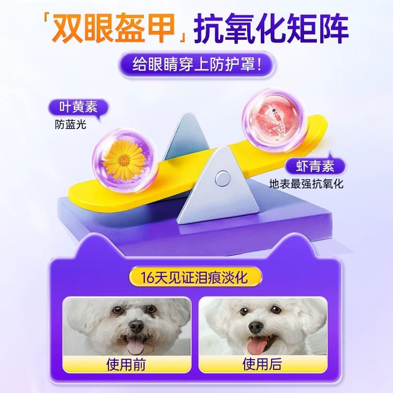 蓝莓叶黄素泪痕片维生素猫咪狗狗宠物专用护眼睛改善视力官方店