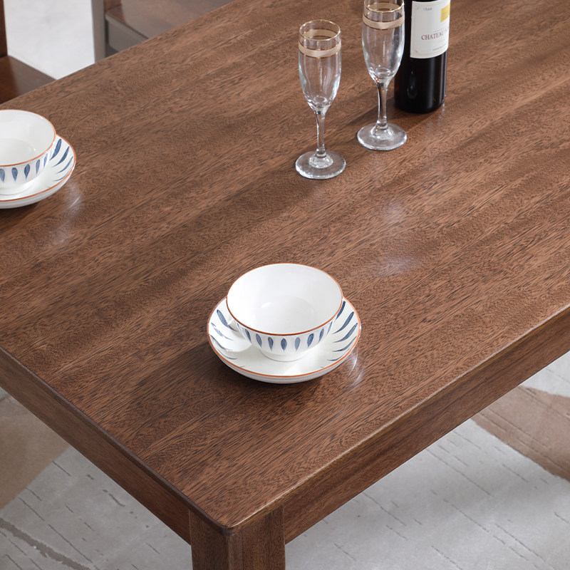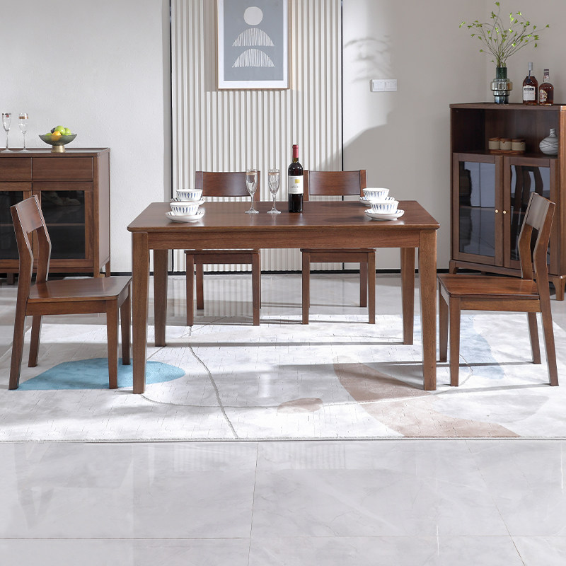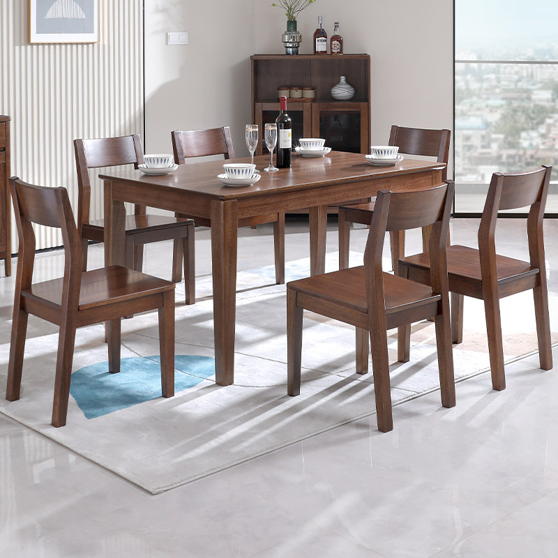 全实木餐桌现代简约长方形饭桌子小户型四六家用胡桃木餐桌椅组合