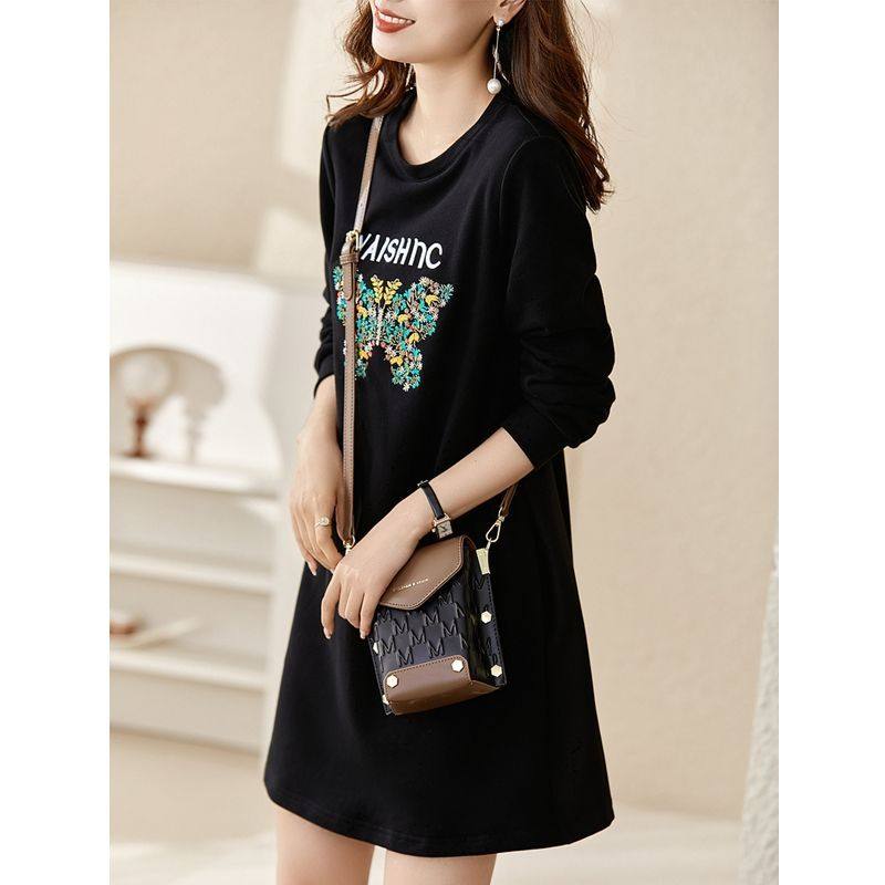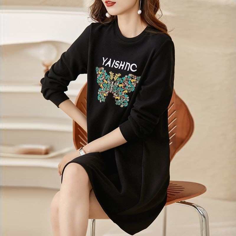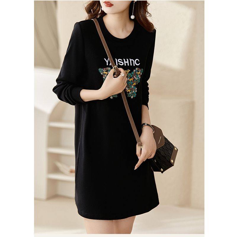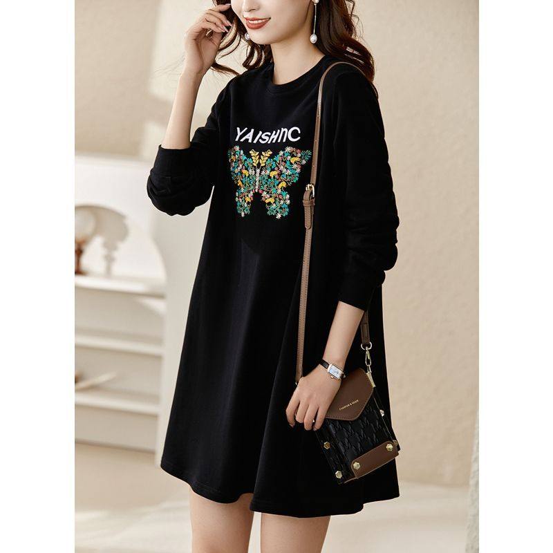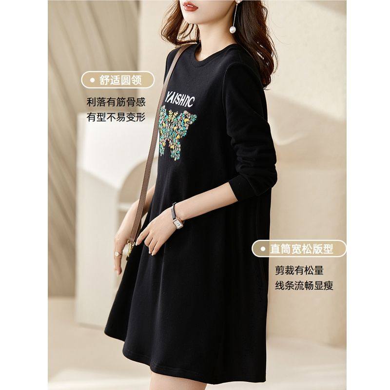 孕妇春秋新款圆领长袖印花纯棉T恤裙韩式时尚减龄休闲百搭连衣裙