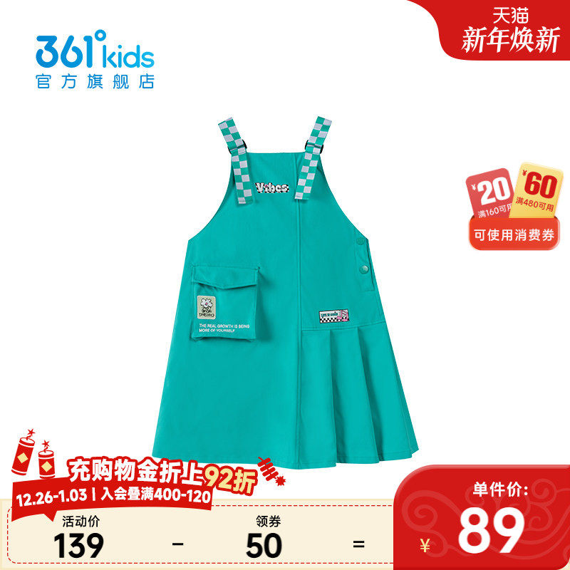 【商场同款】361度童装女童梭织背带裙2025年春秋新款中大童裙子
