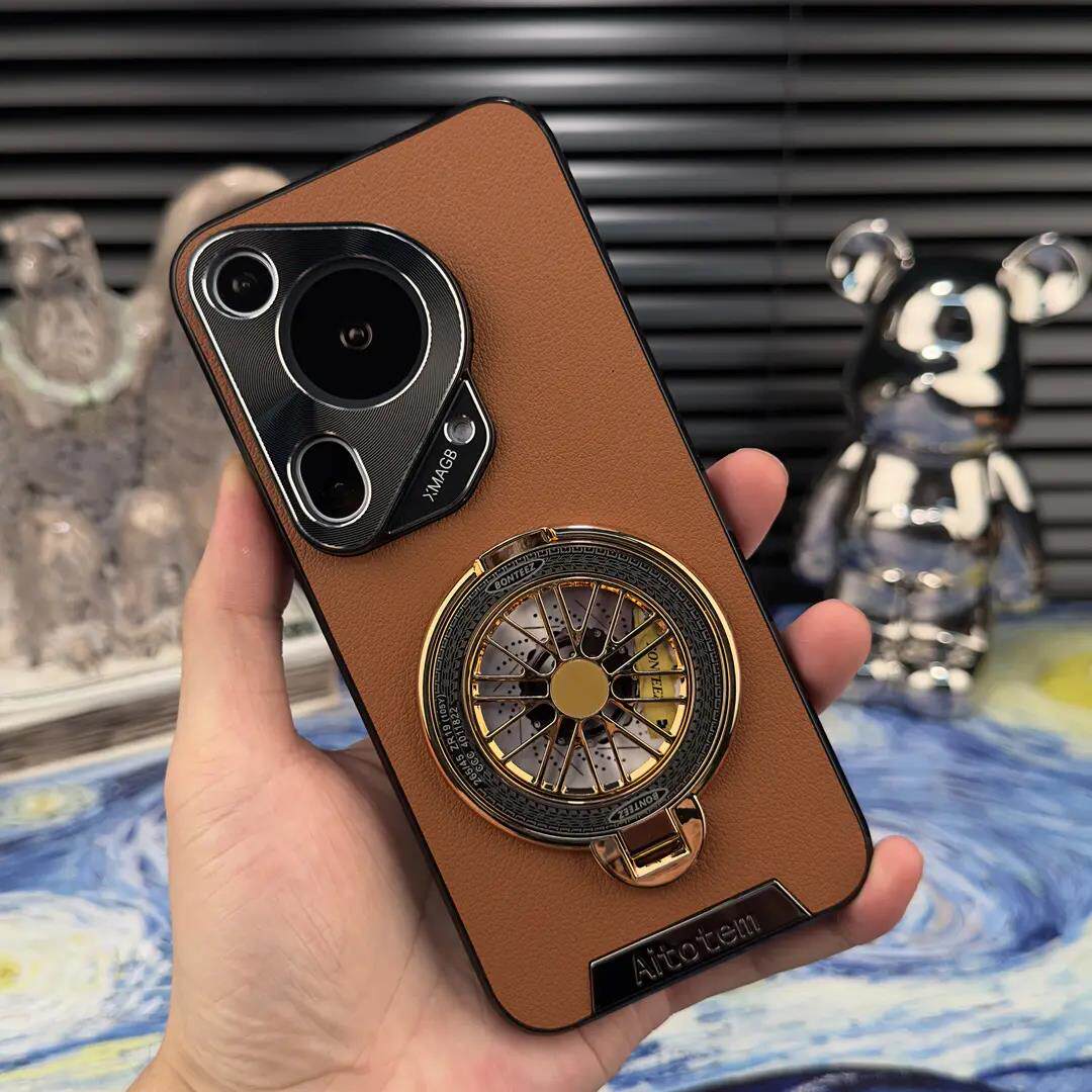 解压陀螺支架星光艺术适用华为pura80ultra手机壳新款高级感全包防摔pura70pro+磨砂皮革手机套p70商务保护套