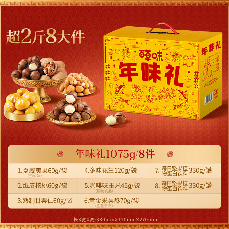 百草味坚果大礼包1075gx2盒混合干果礼盒每日坚果零食送礼送长辈