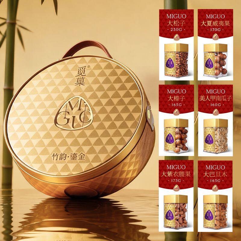 觅菓礼盒鎏金款6罐竹韵1065G春节年货送长辈送礼腰果