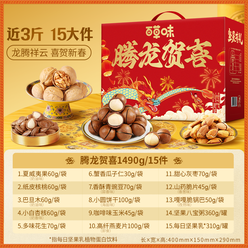 百草味新年坚果礼盒零食品混合干果大礼包过节送礼品特惠年货去年