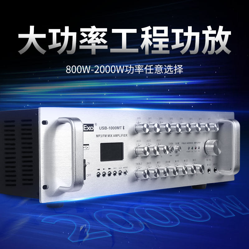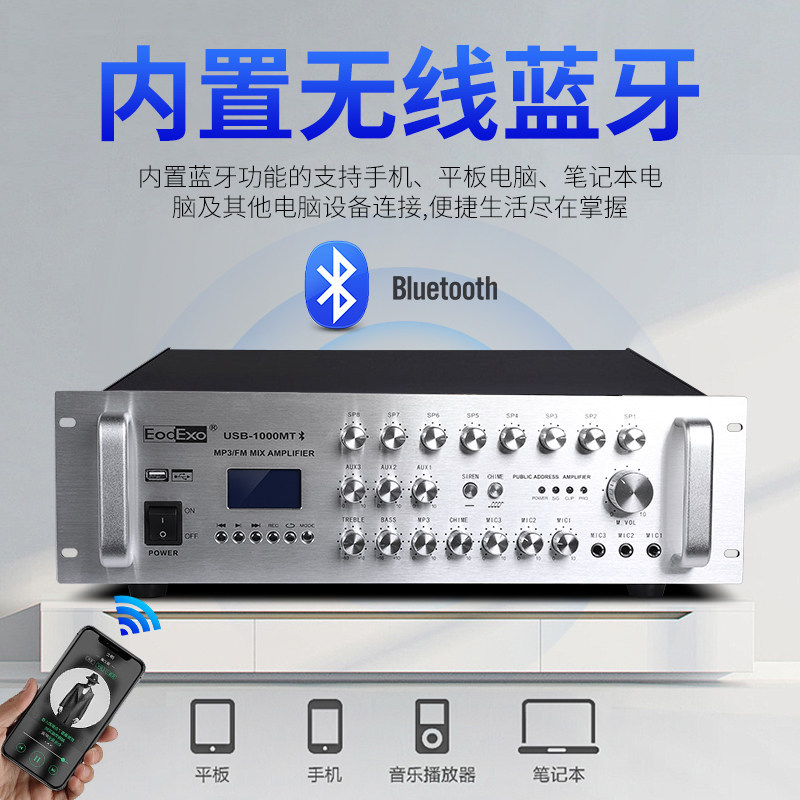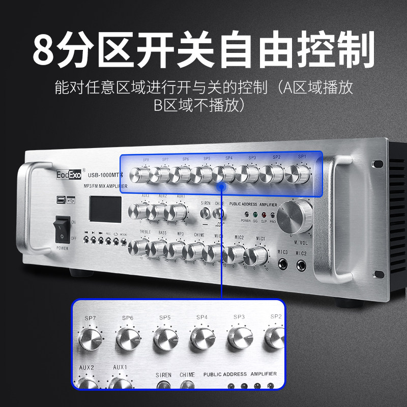 EodExo USB-800MT定压蓝牙功放机800W带八分区广播机功放吸顶喇叭