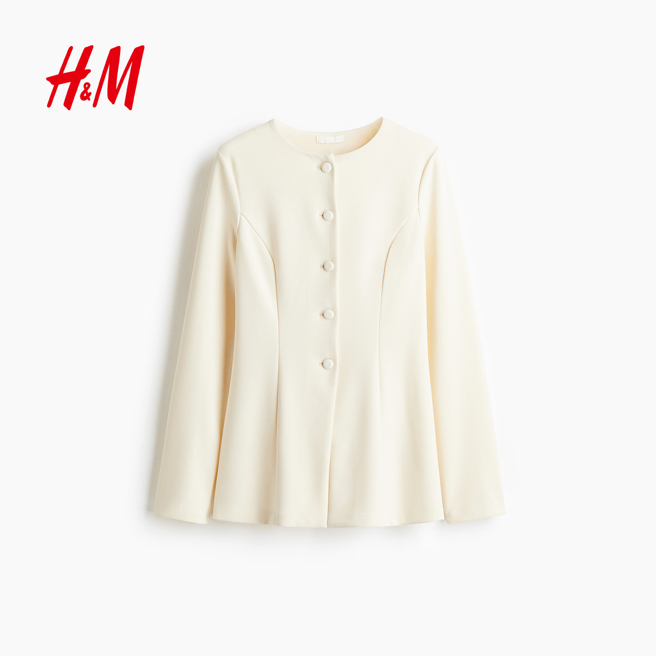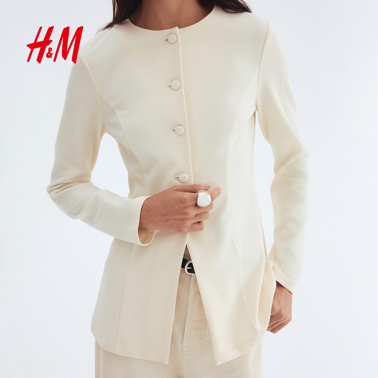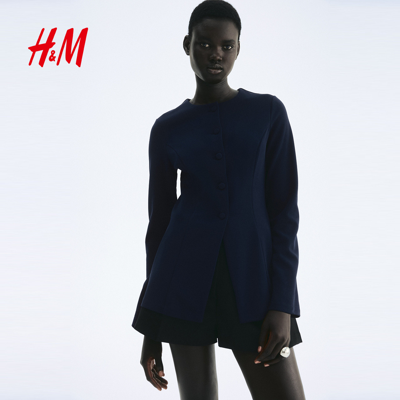 HM女装西装2025年冬季新款收腰双面布通勤职业正装外套1299853
