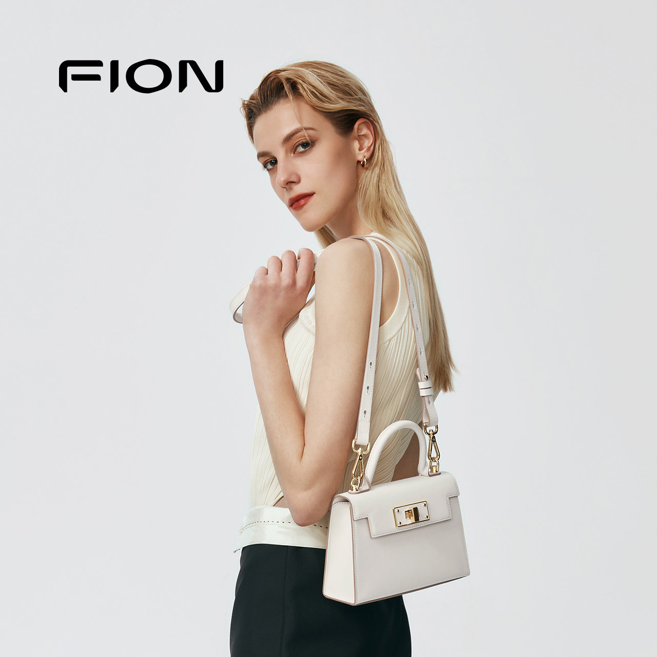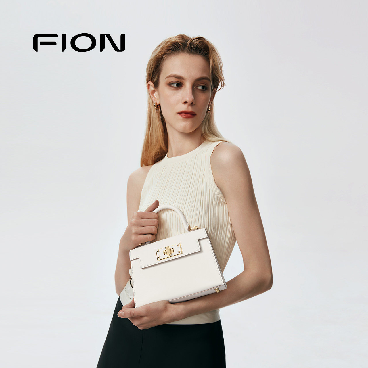 Fion/菲安妮女包手提凯莉包新款真皮小方包洋气轻奢女单肩斜挎包