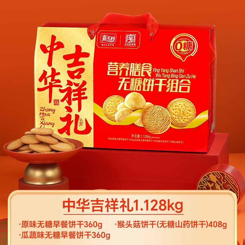 嘉士利早餐饼干无糖年货礼盒送礼品下午茶点心小零食休闲小吃食品