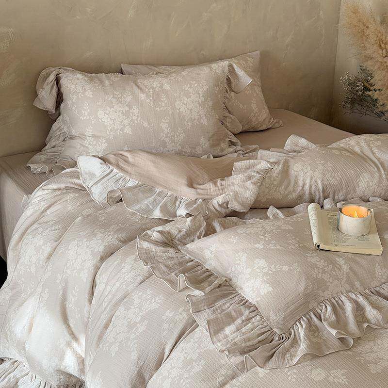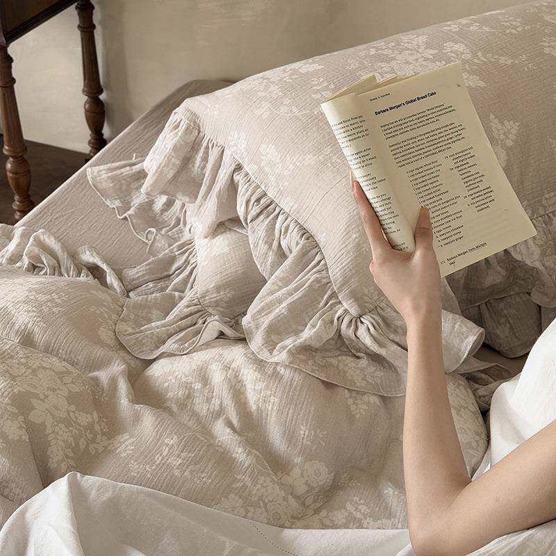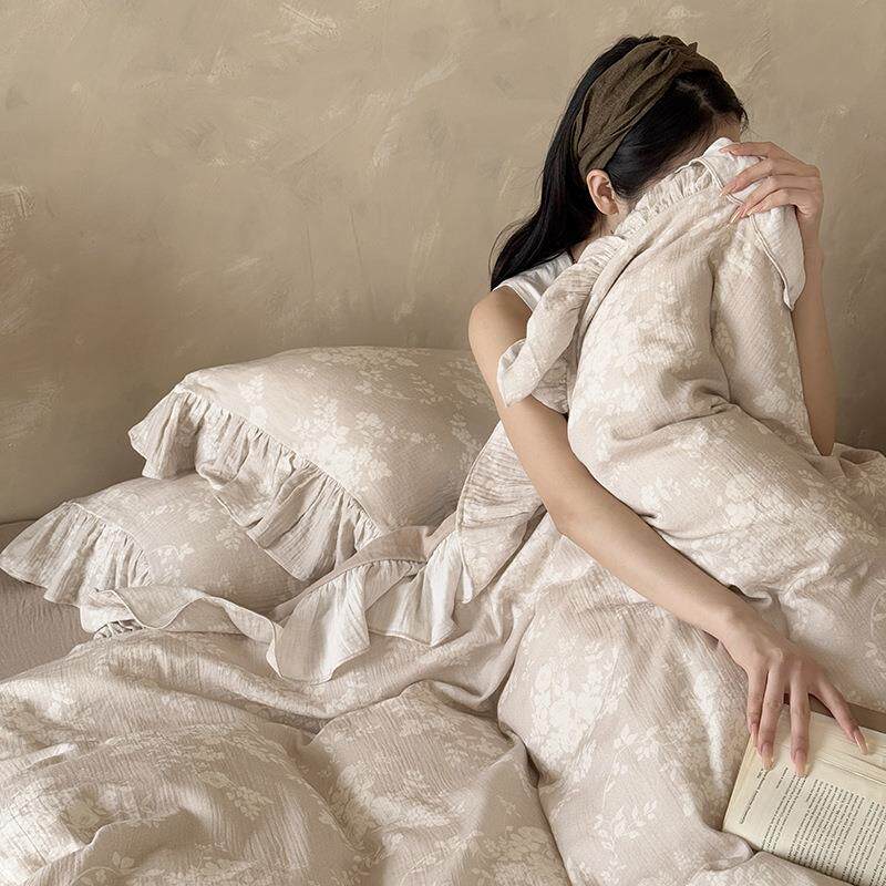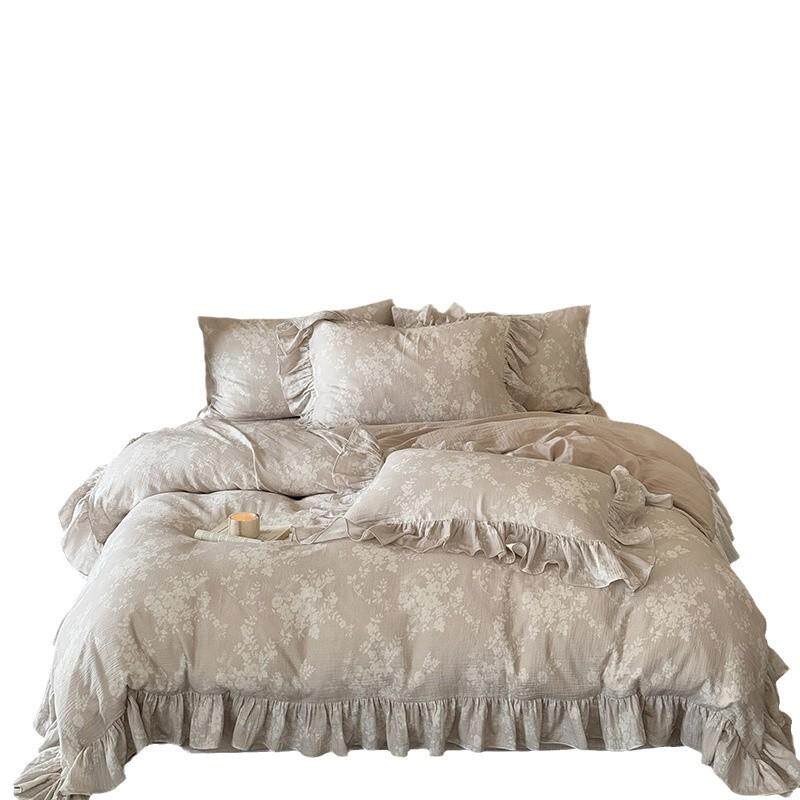 复古a类纯棉双层纱四件套法式全棉被套床单保暖花边1.8m床上用品