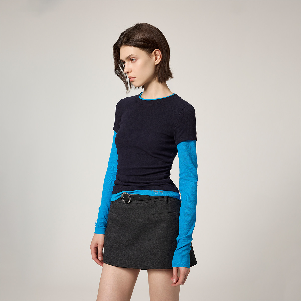 OCHIRLY欧时力 假两件撞色长袖T恤修身上衣内搭女士春装