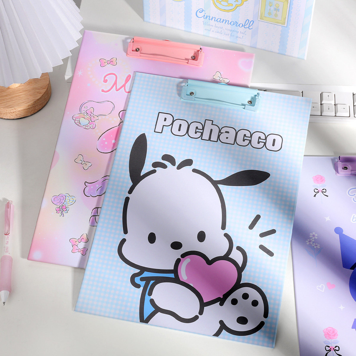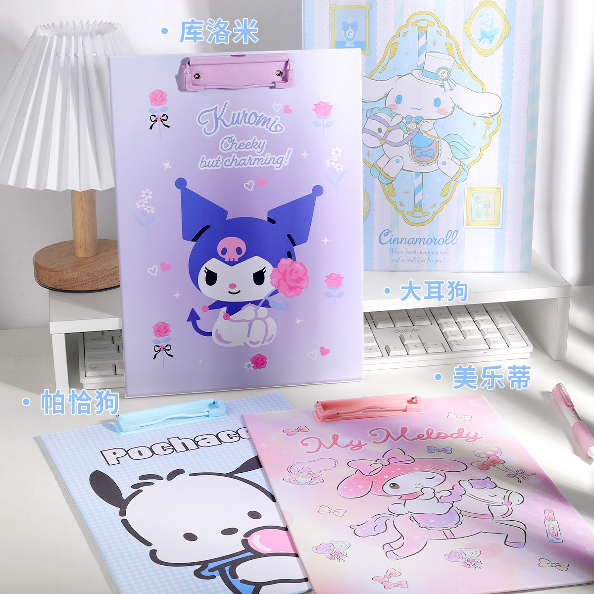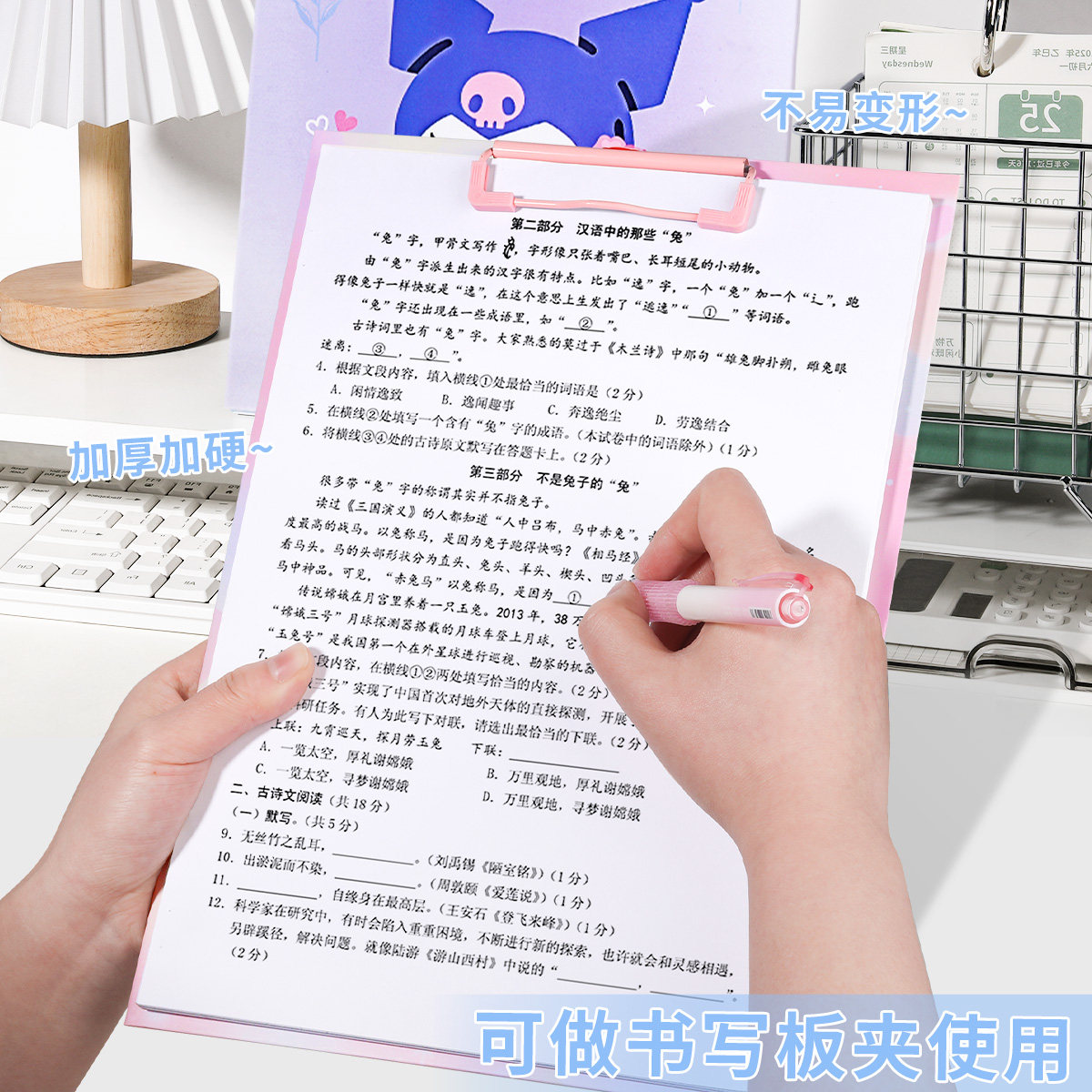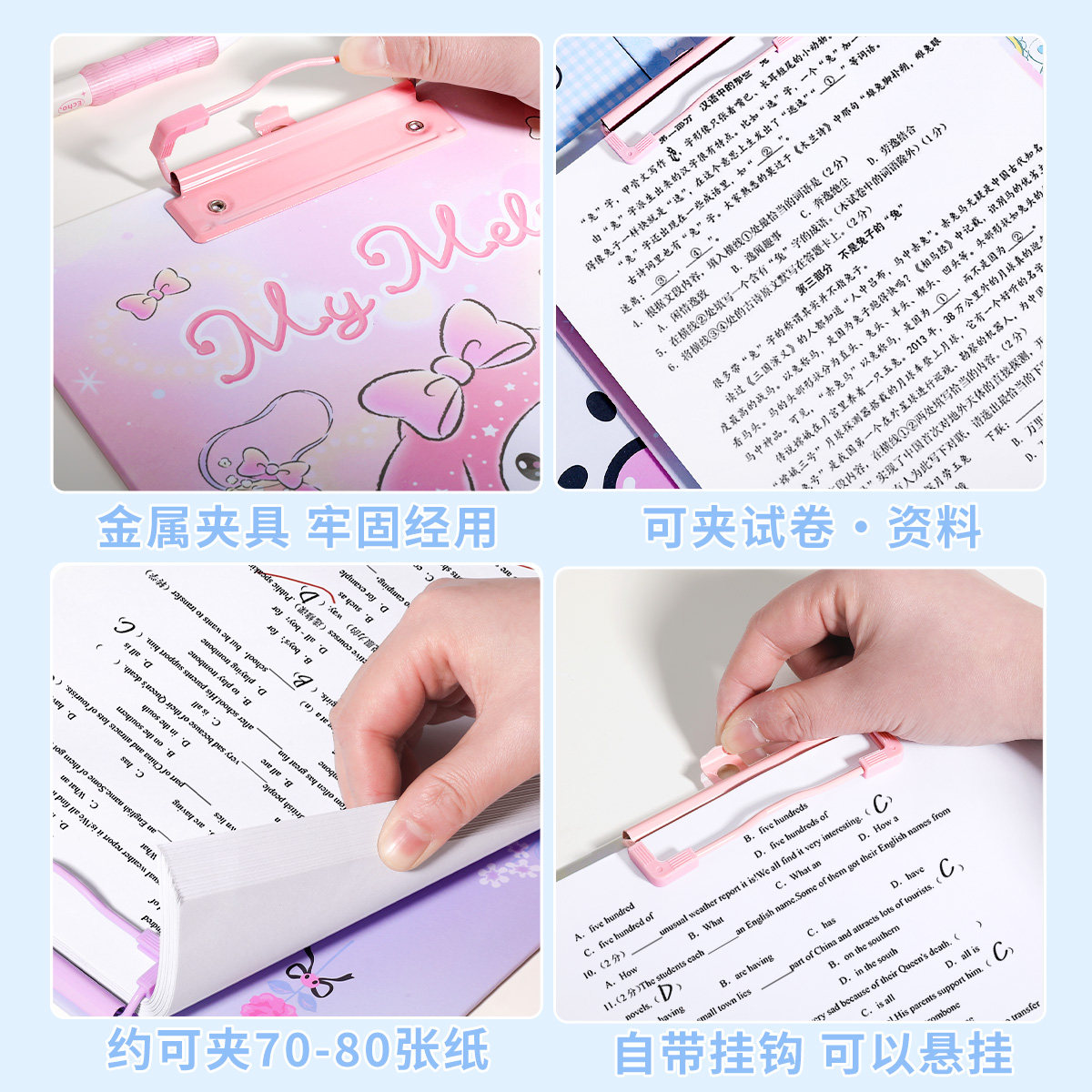 正版授权三丽鸥板夹A4文件夹写字板库洛米夹板试卷收纳夹小学生专用纸质垫板初中竖式垫纸板金属夹子固定纸张