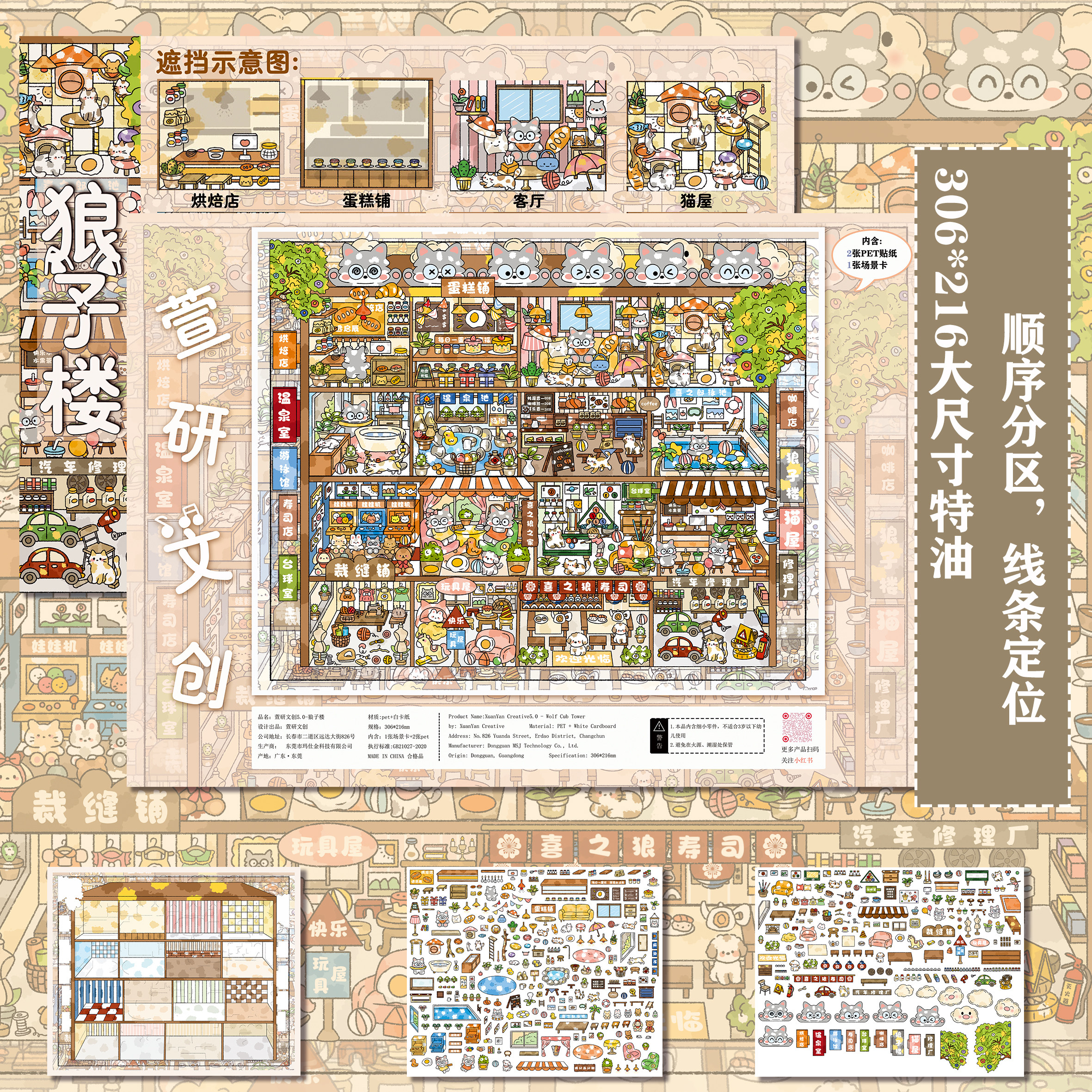 萱妍文创5.0时光空隙系列大版造景贴纸繁荣昌盛特油工艺微缩场景3D立体小屋贴画手帐手工diy玩具女孩新年礼物