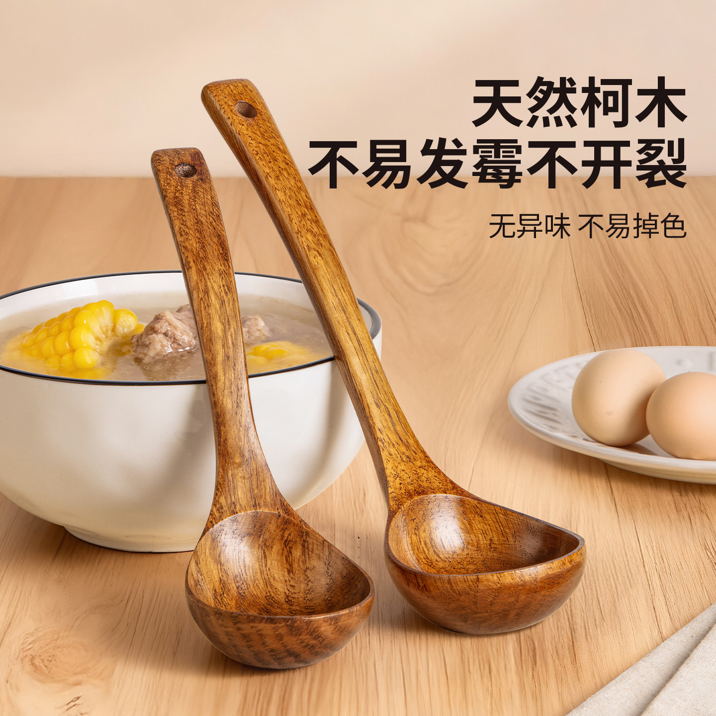 日式大汤勺吃螺蛳粉木勺子吃播网红嗦粉喝汤勺家用长柄拉面勺粥勺