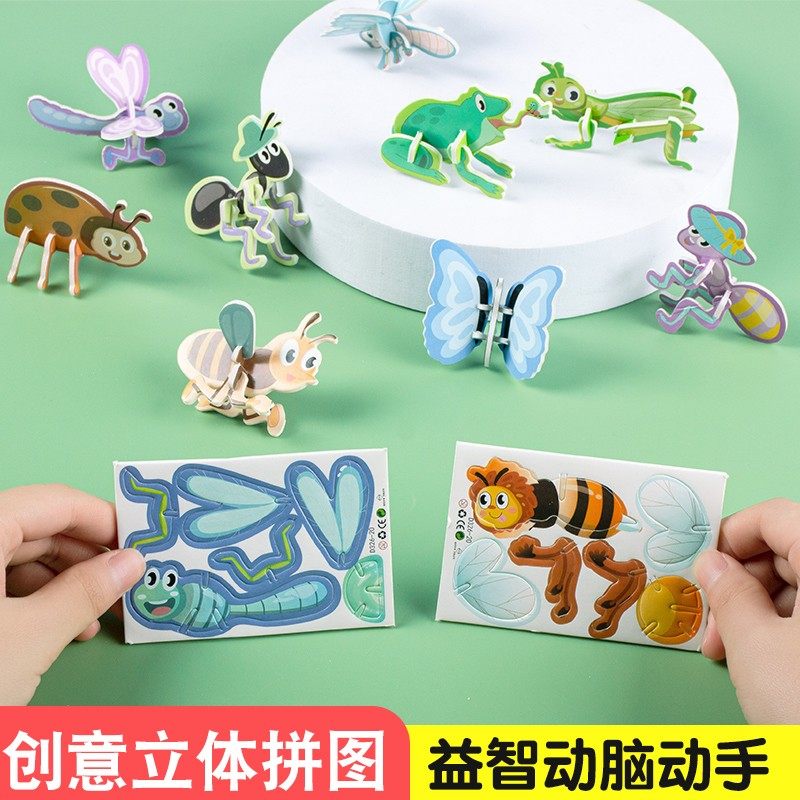3D趣味昆虫立体拼图儿童创意DIY玩具幼儿园早教手工拼装益智卡片