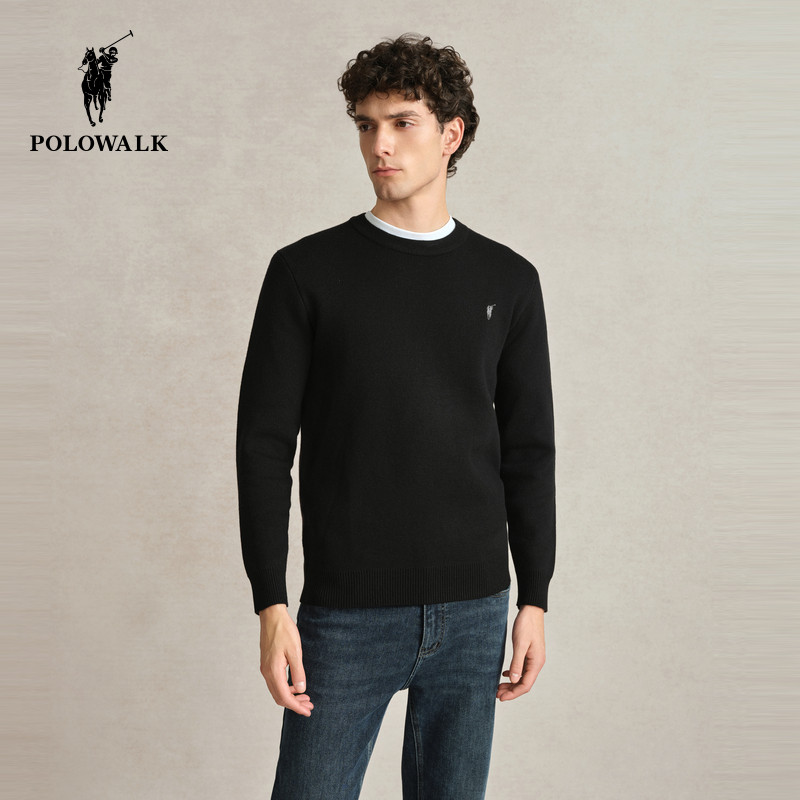 POLOWALK男士圆领针织衫秋冬纯色百搭羊羔绒打底衫套头毛衣男