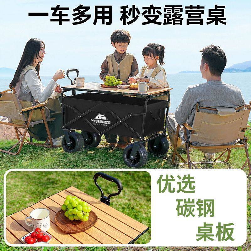户外露营车可折叠便捷拉杆手推车野餐营地摆摊桌板旅行快递小推车