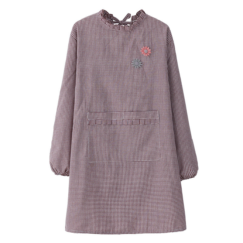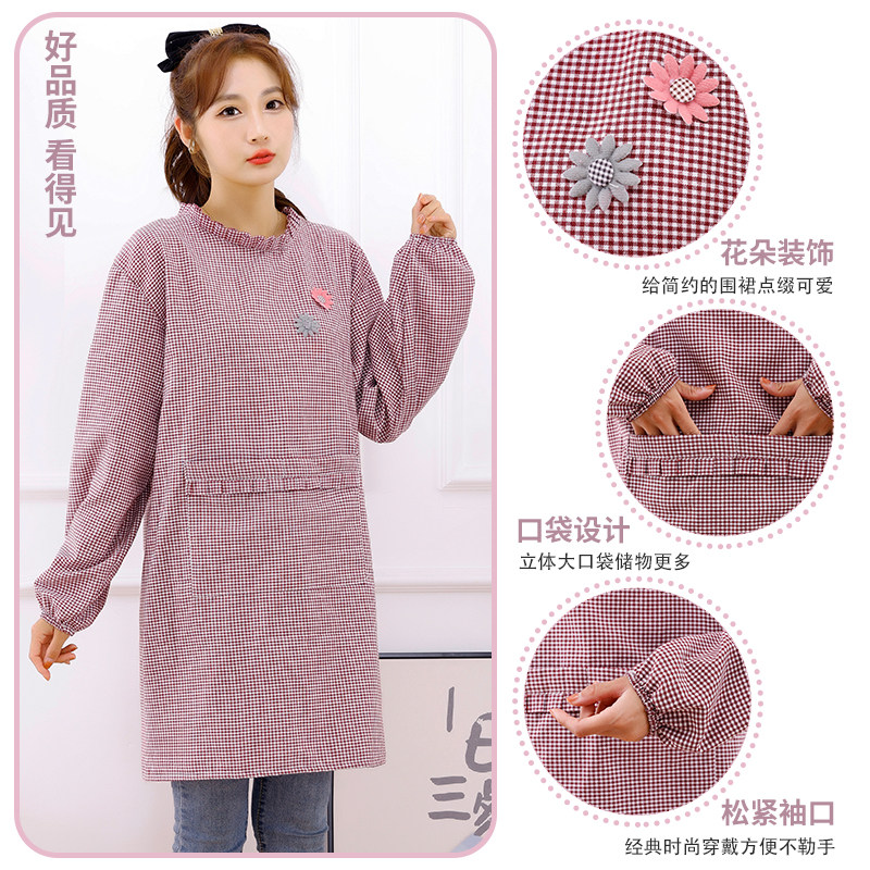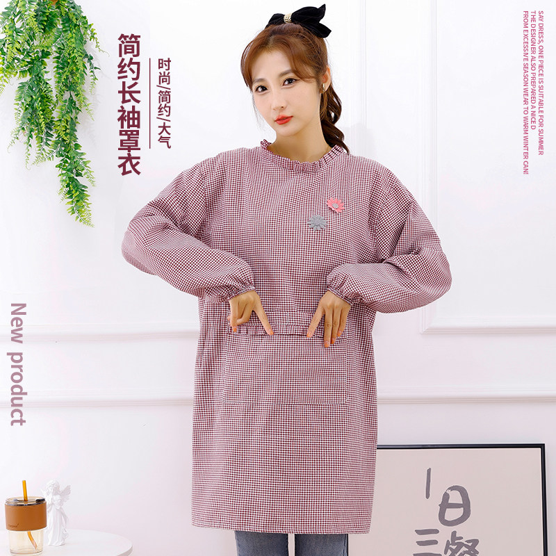 新款棉布耐磨围裙长袖厨房家用防污罩衣透气围腰做饭上班工作服女