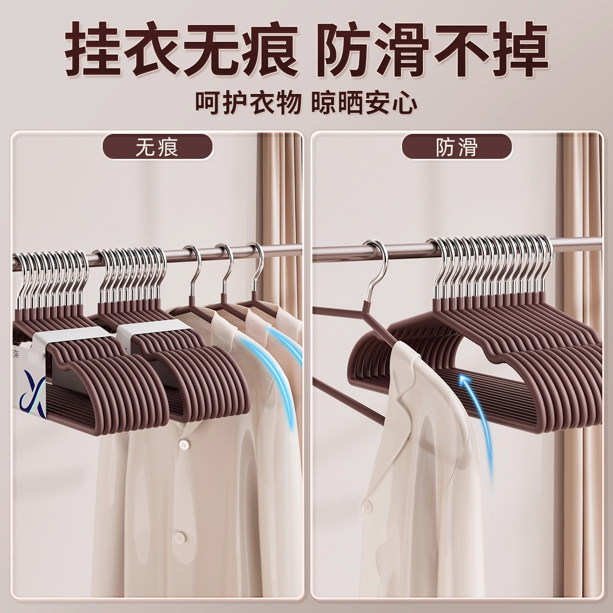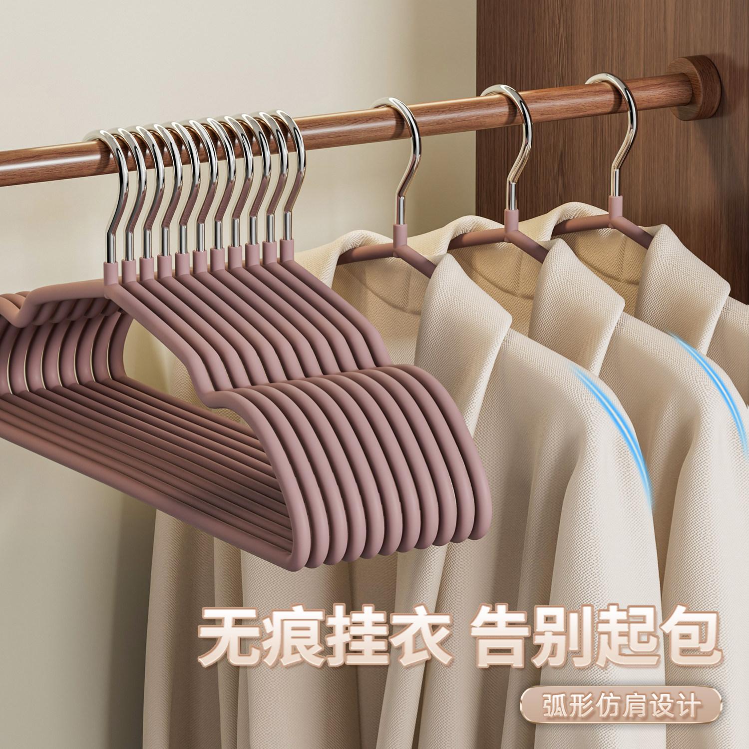 轻奢无痕衣架防滑家用成人加粗学生衣服撑晾衣架挂衣阳台浸塑结实