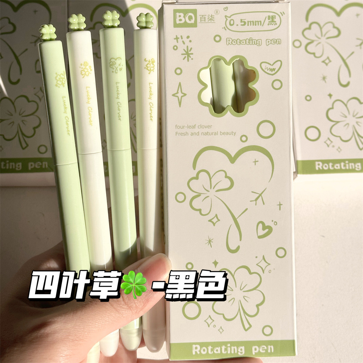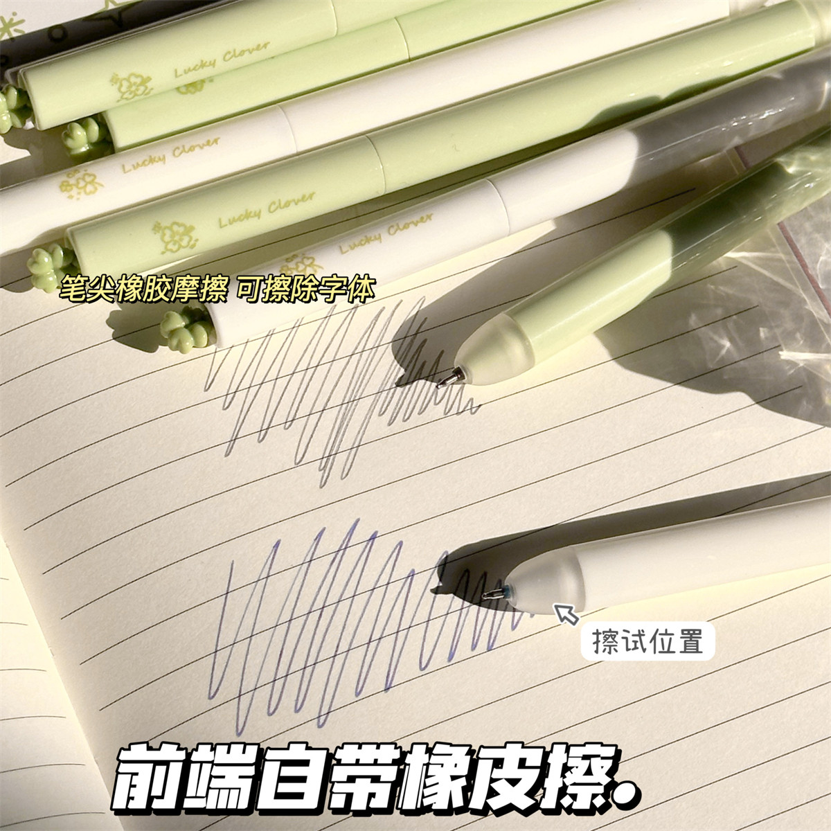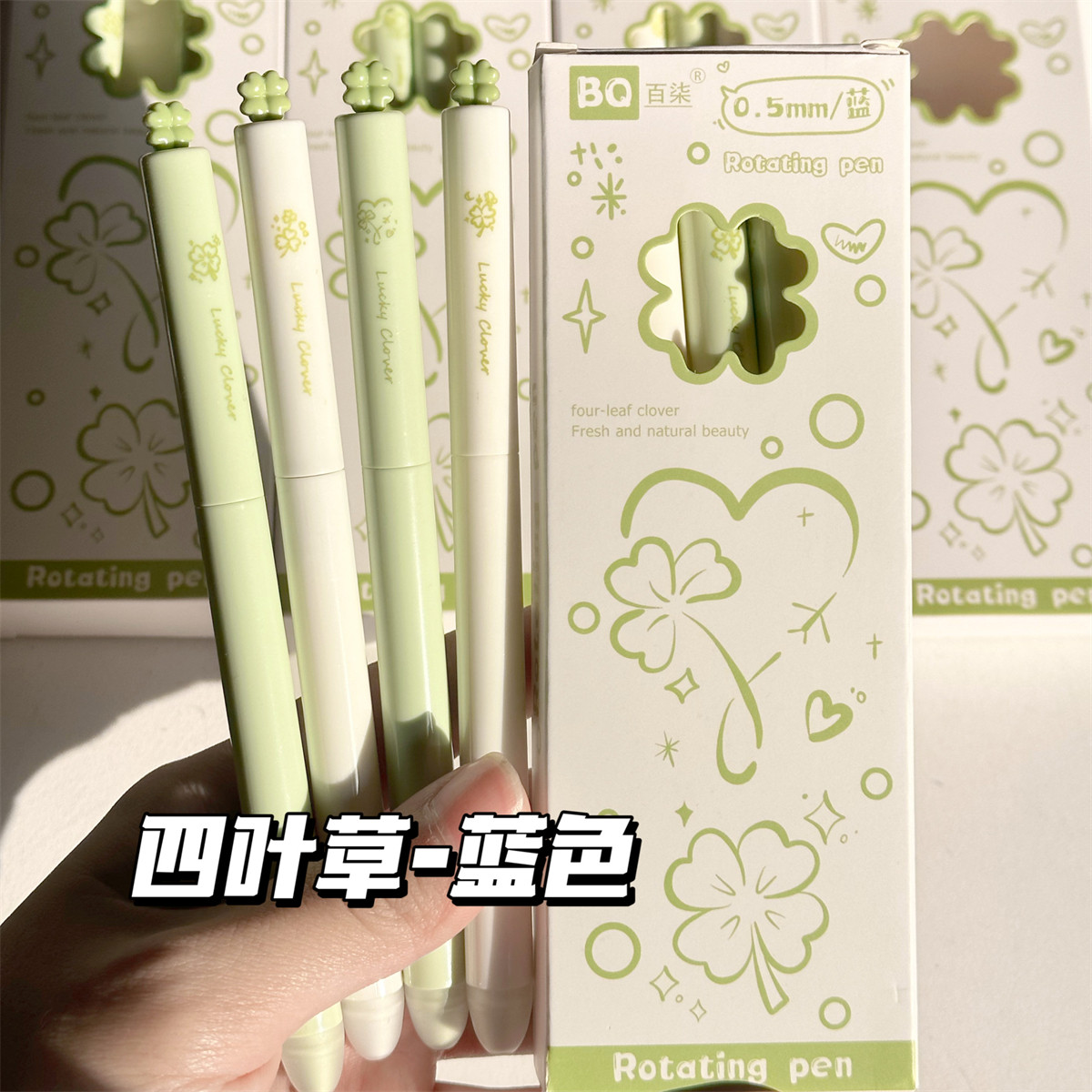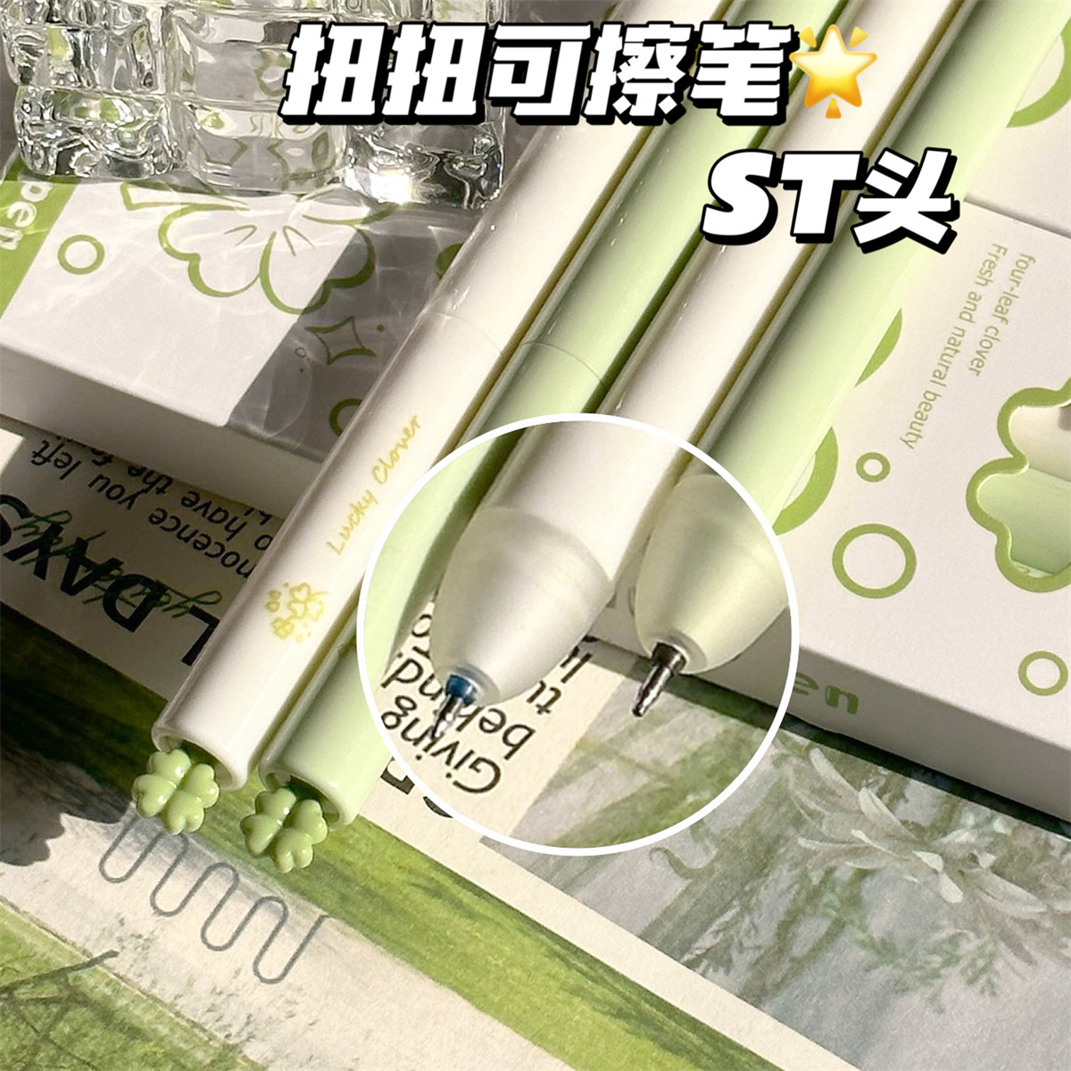原创四叶草旋转可擦笔高颜值ins风热敏可擦晶蓝黑色橡皮热可擦笔
