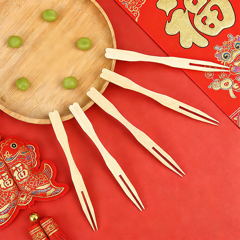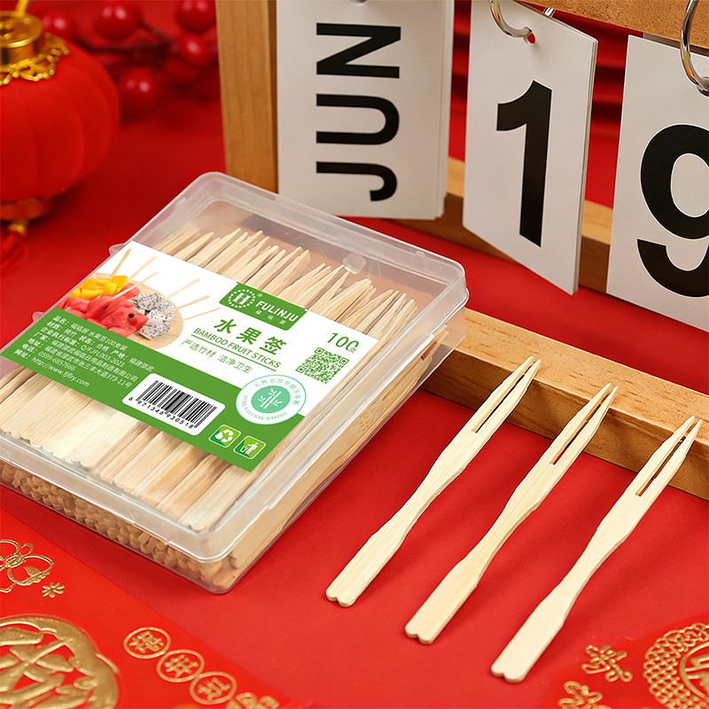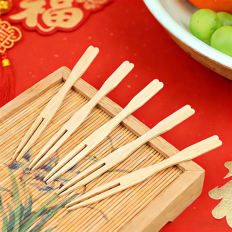居一次性水果叉食品级竹果叉蛋糕甜品点心叉家用水果签安全牙签