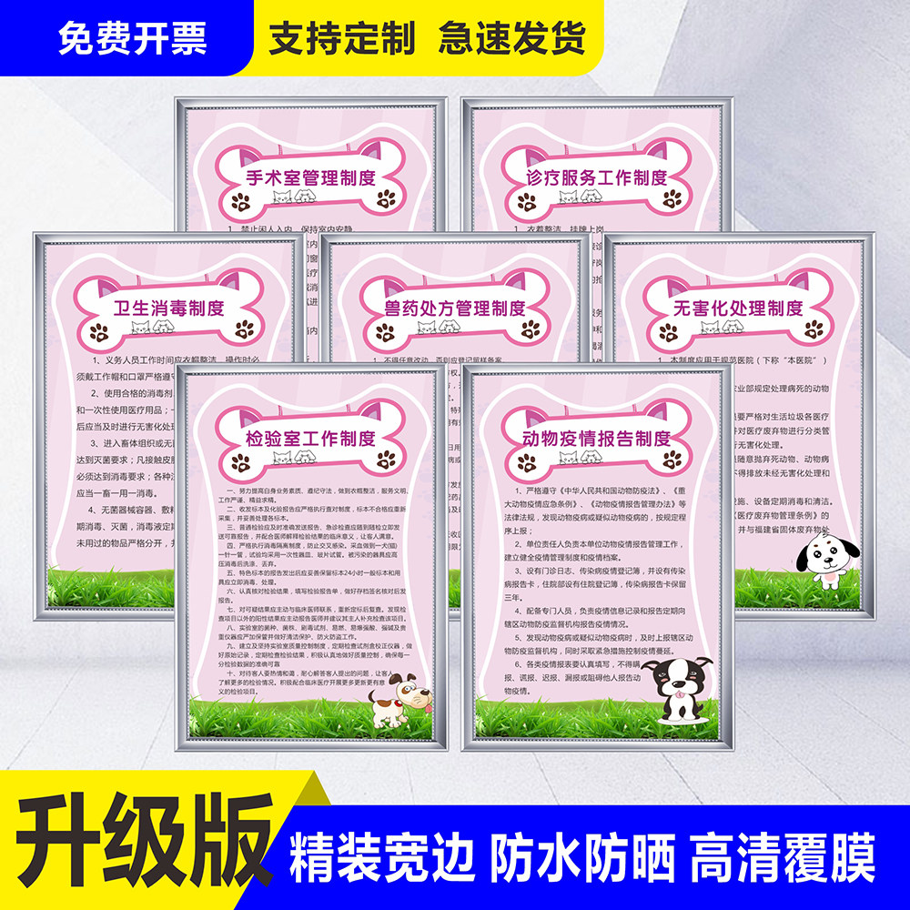 宠物诊所医院管理制度牌动物诊所挂图兽药兽医处方管理制度处方卫生消毒疫情报告制度诊疗服务贴制度定制全套