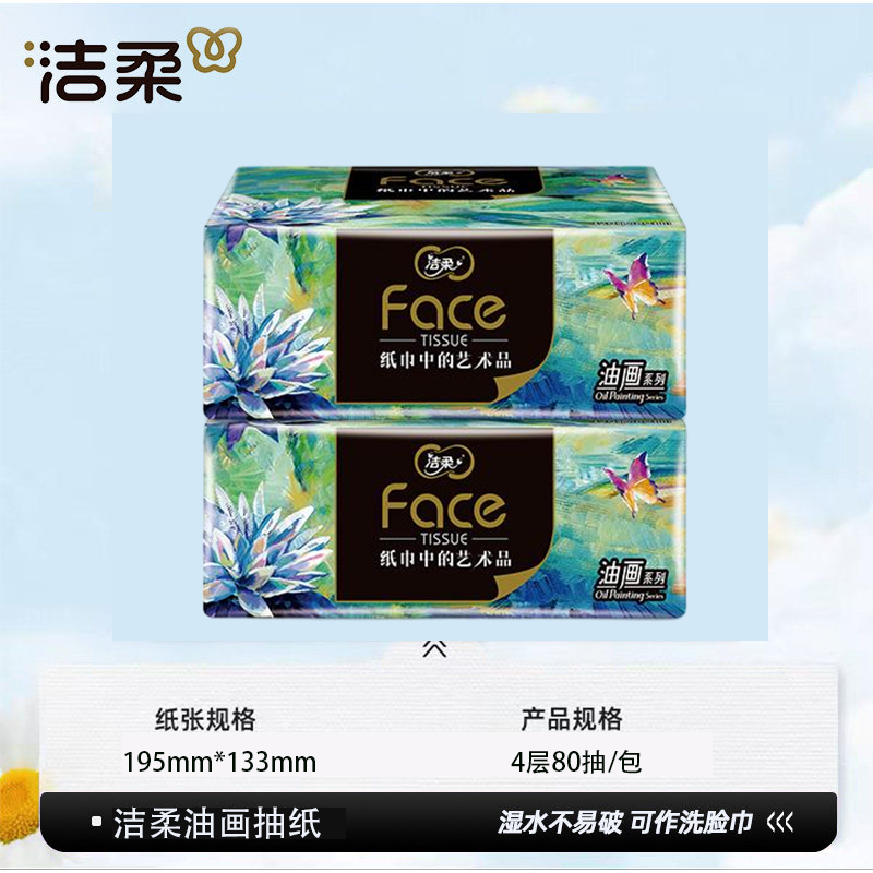 洁柔油画抽纸4层80抽高端厚实纸巾2元包邮家用抽取式面巾纸餐巾纸