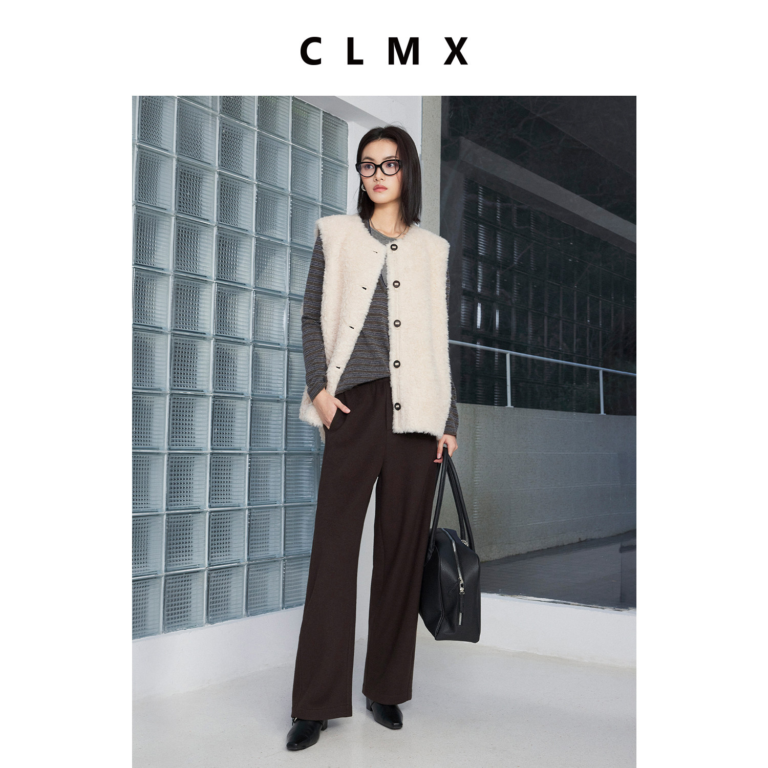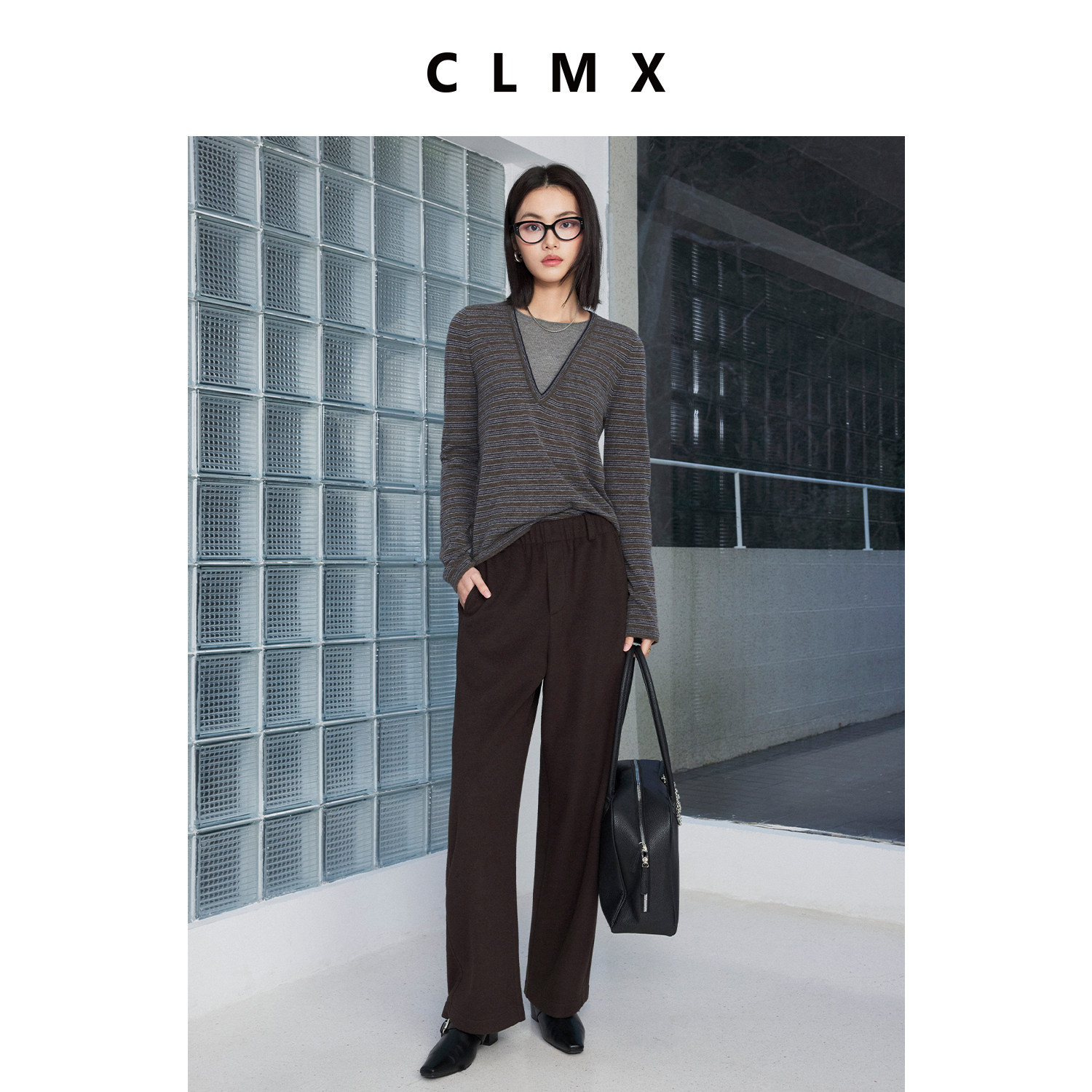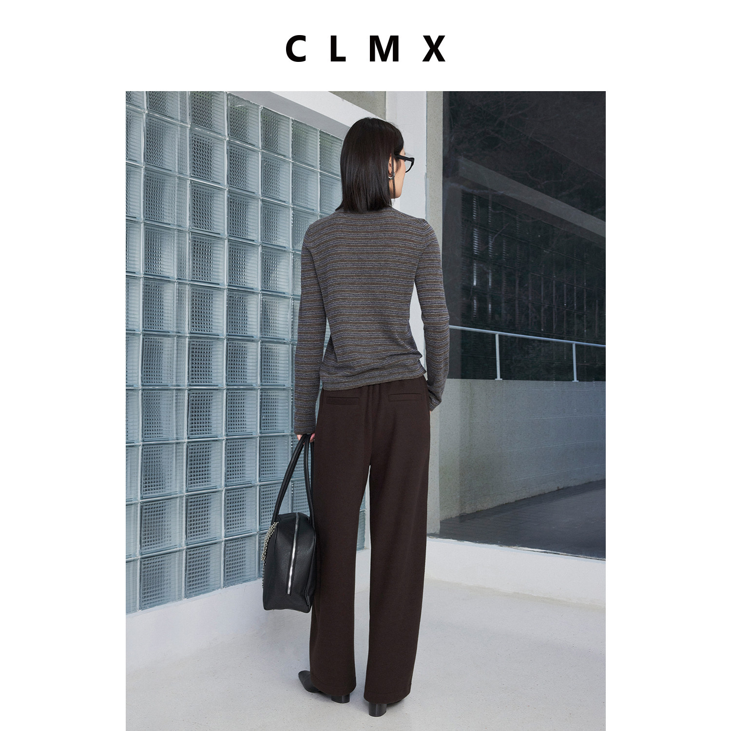 CLMX温暖亲肤双面复合微量羊毛针织布时装感松紧腰宽松奶奶直筒裤