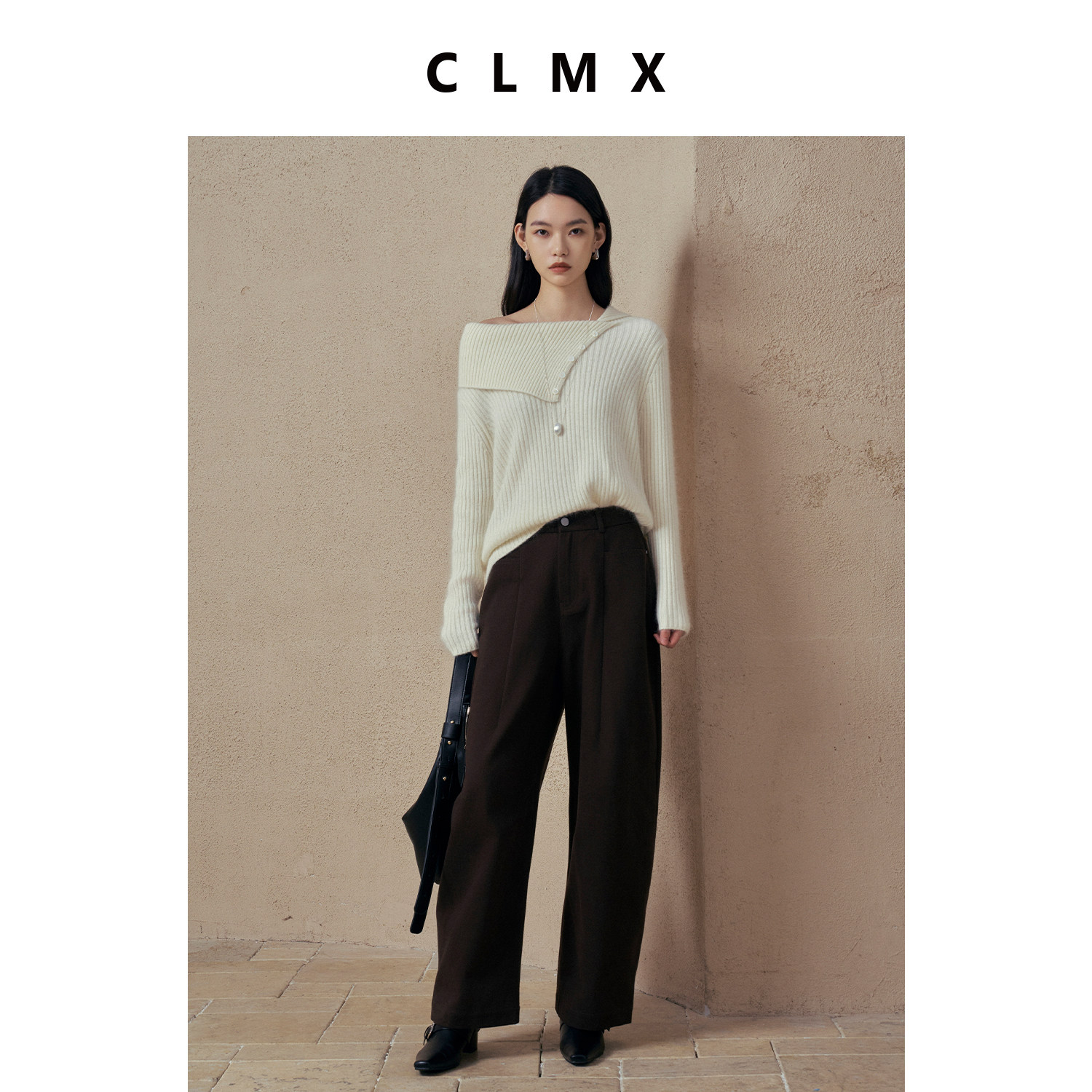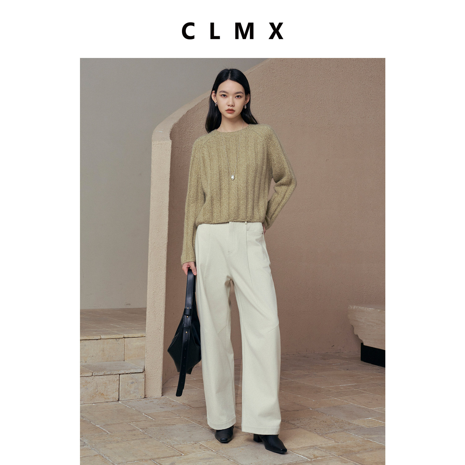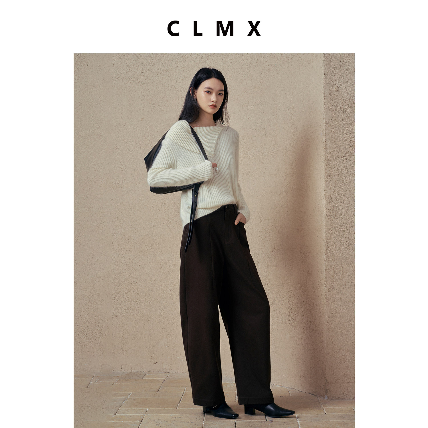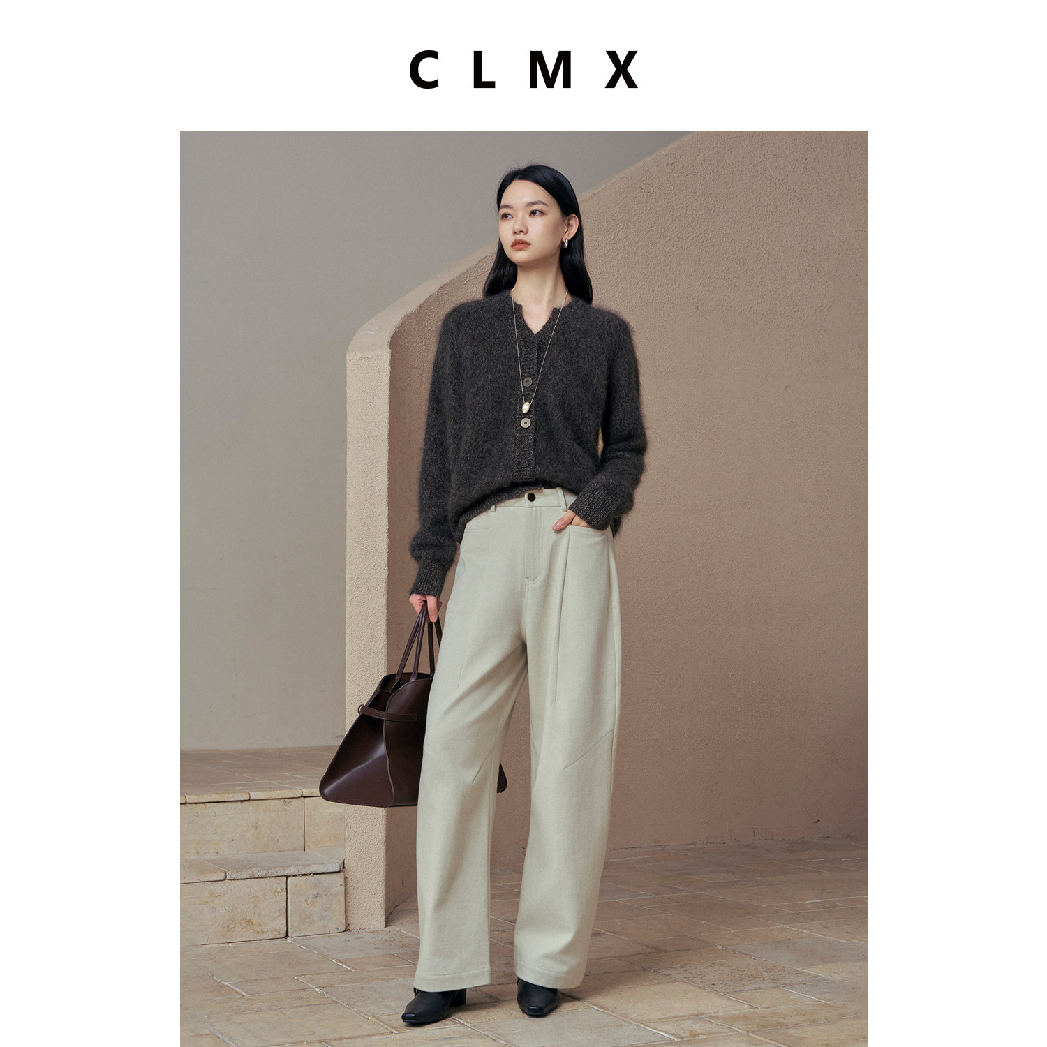 CLMX粗斜纹水洗棉面料时装感显瘦显高宽松窄脚香蕉直筒长裤