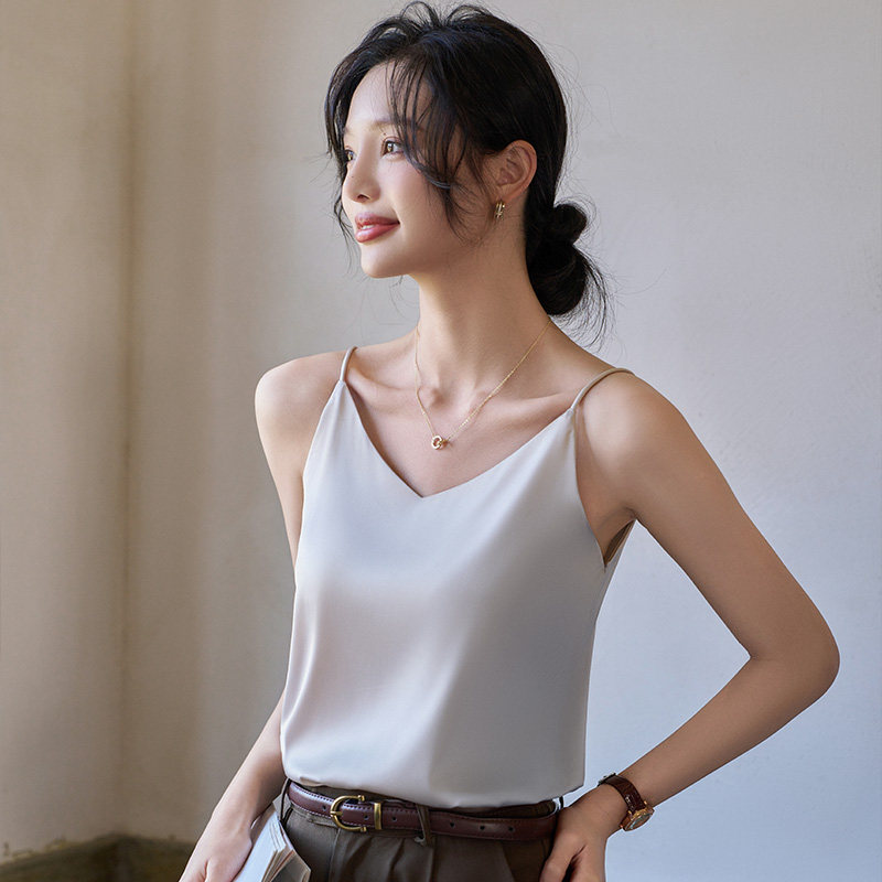 真丝V领小吊带背心女2026新款内搭夏季薄款缎面宽松无袖打底上衣