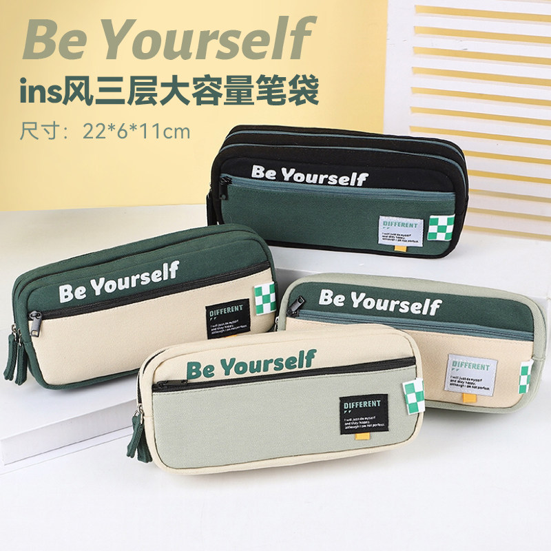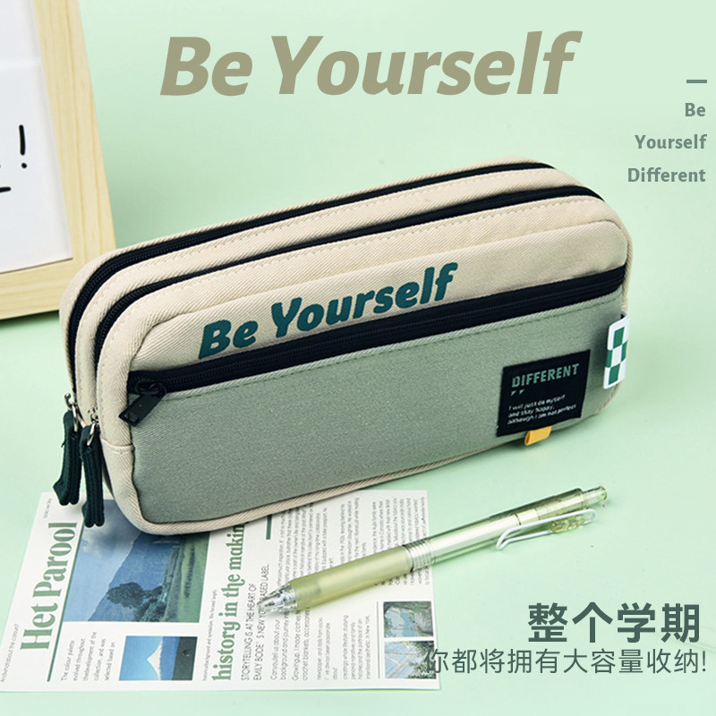 派悦大容量简约笔袋男孩款2025新款文具盒高颜值ins风日系小学生初高中生男生铅笔盒小众文具收纳袋学习用品