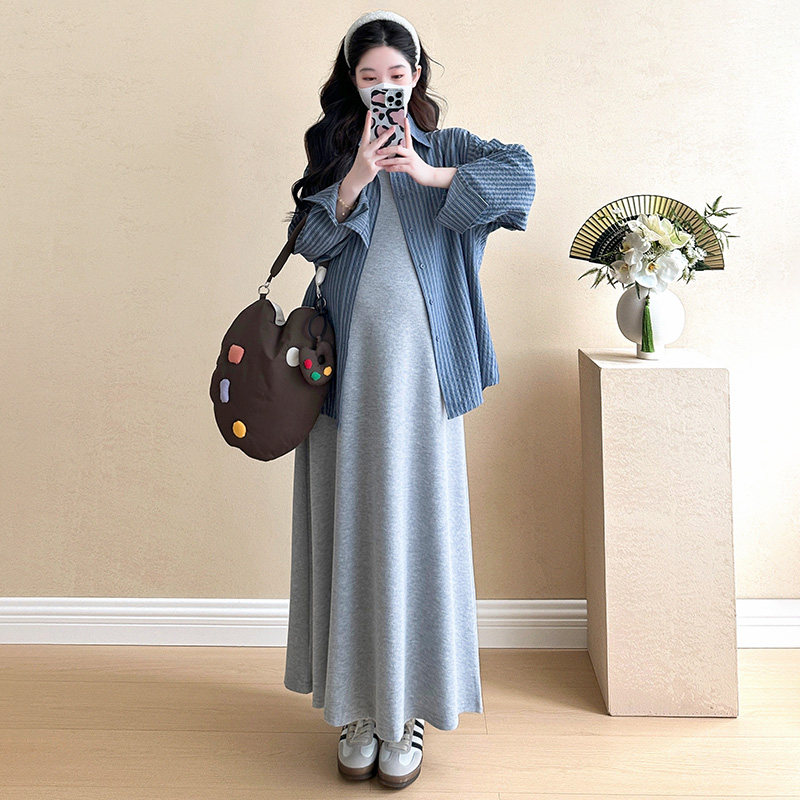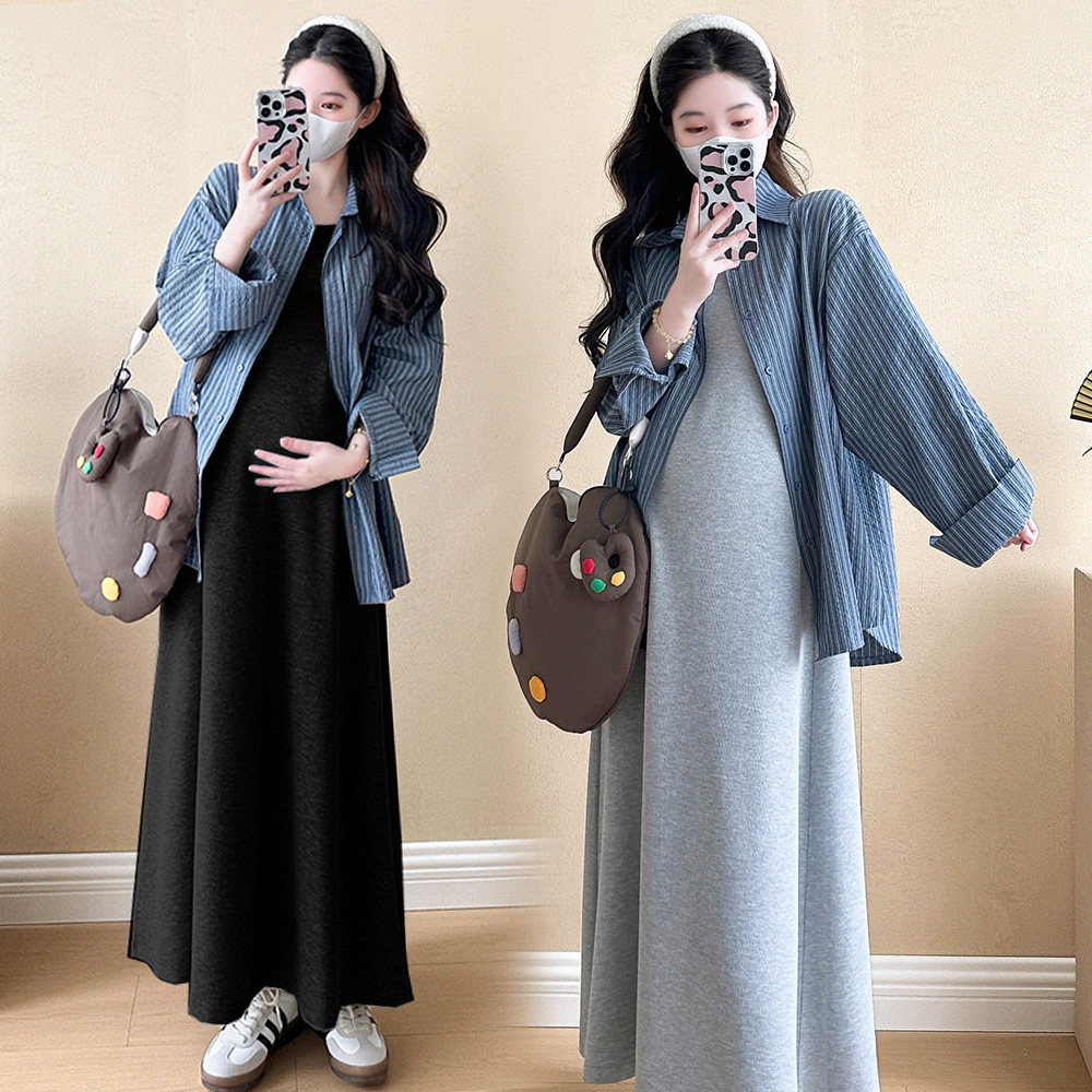 婧麒孕妇装连衣裙套装秋装2025新款套装衬衫时尚背心长裙子春秋款