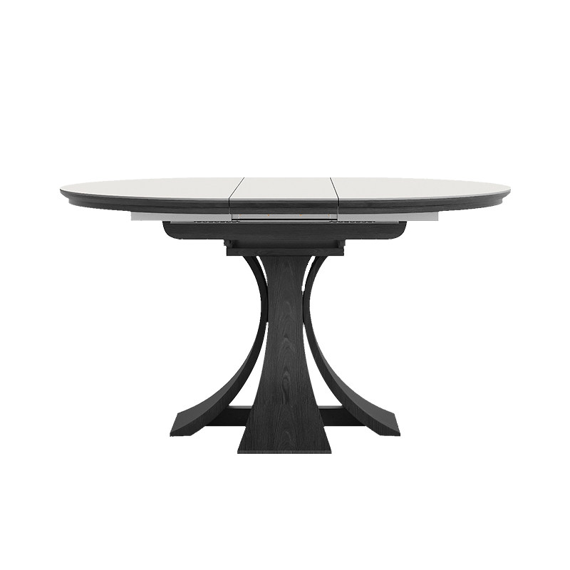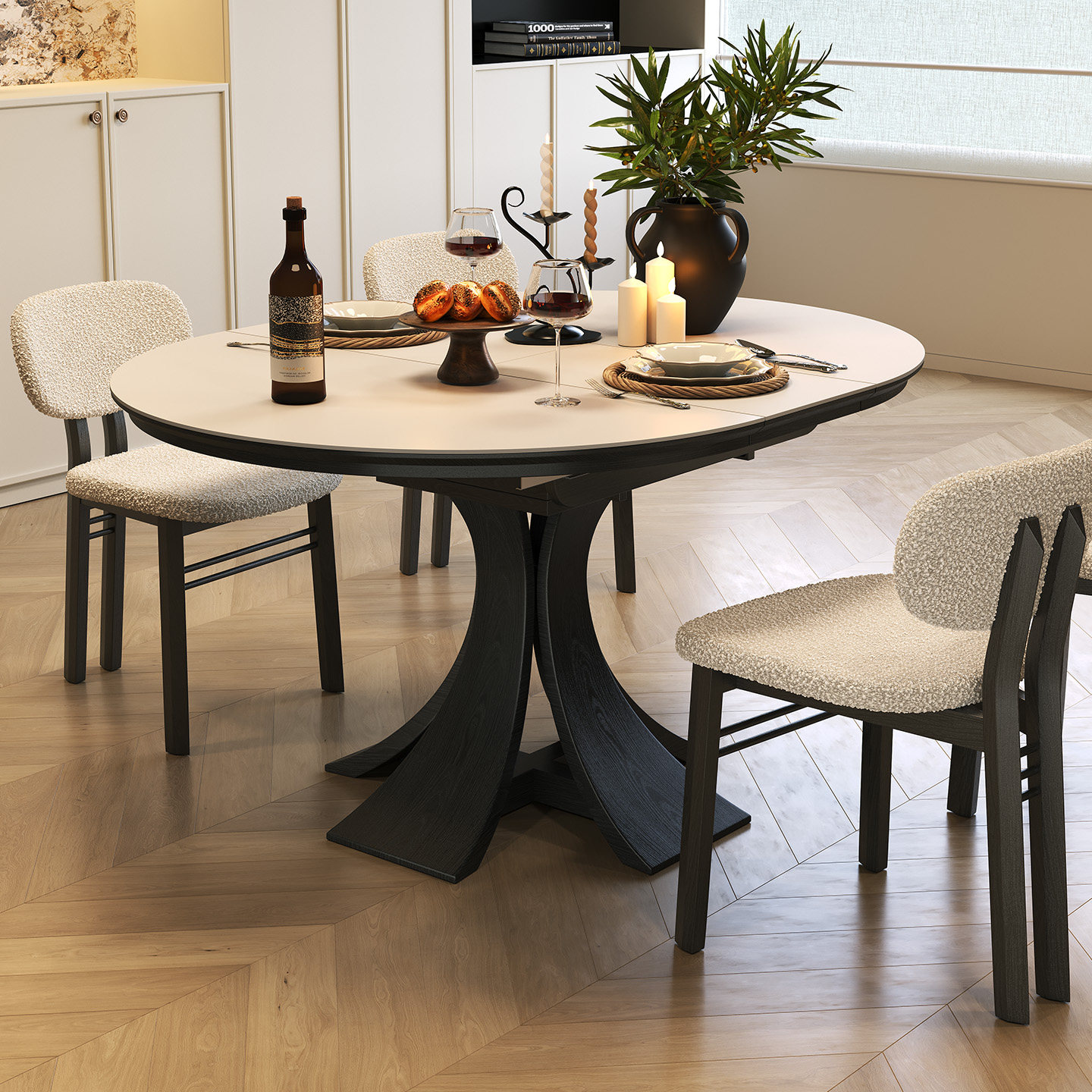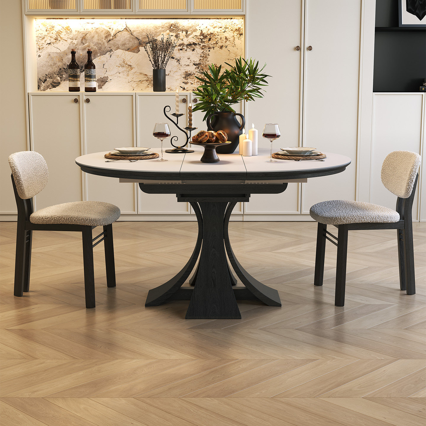 奥古斯特 小户型伸缩餐桌圆形可折叠抽拉家用复古风实木岩板餐桌