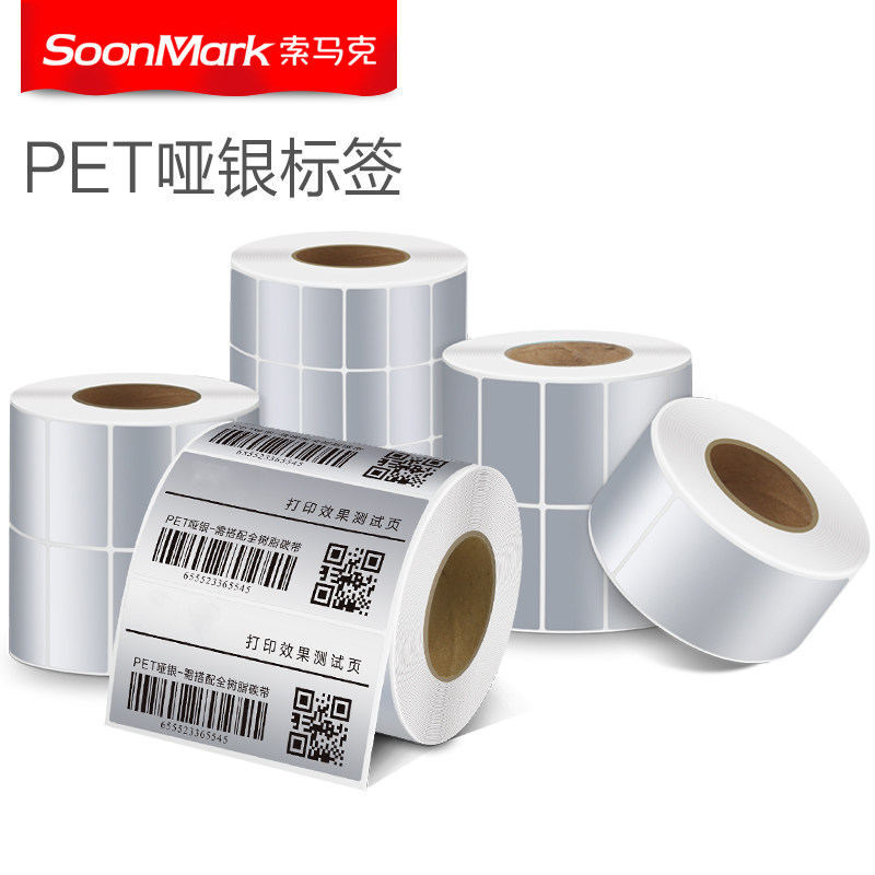 哑银标签纸不干胶条码纸防水防撕空白pet打印纸亚银标签贴纸90*80*60*70*50*40*30*20电子设备固定资产标签
