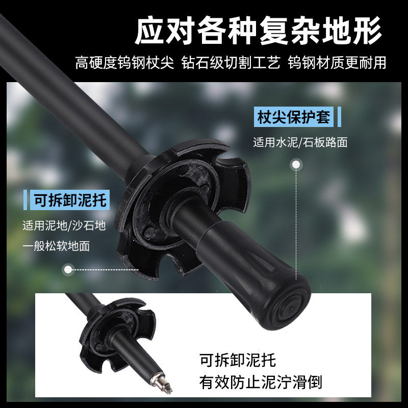 户外登山杖手杖碳素超轻伸缩折叠滑雪防滑拐杖多功能爬山徒步装备