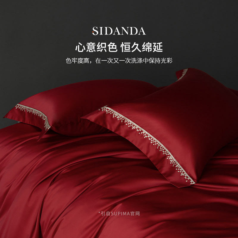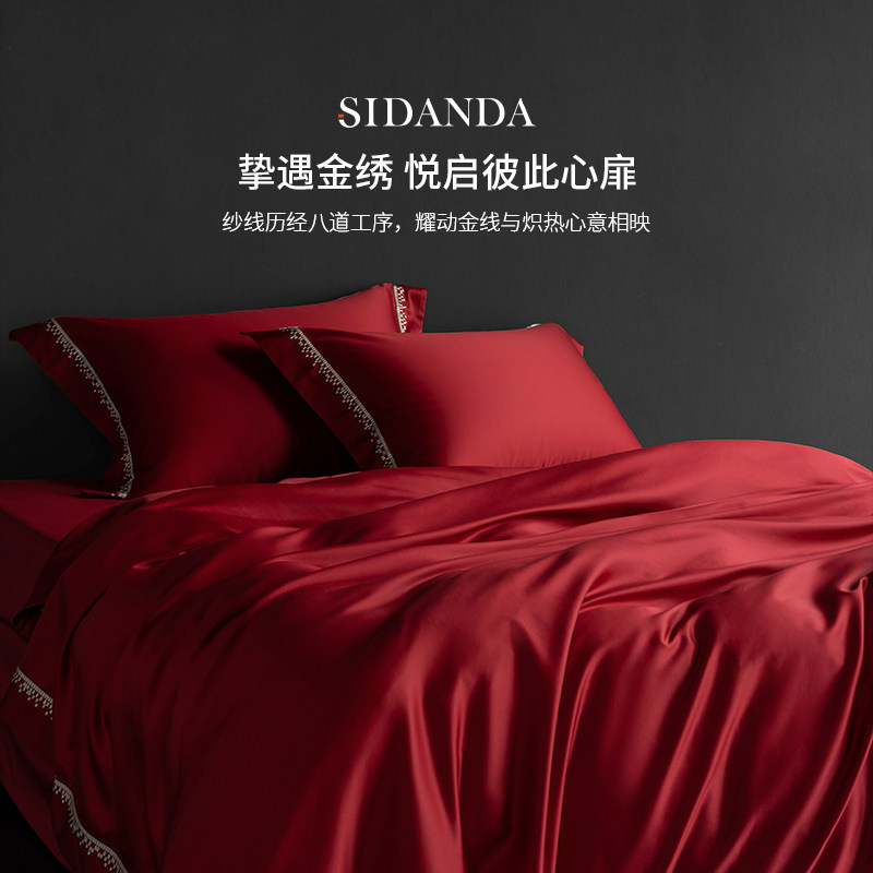 SIDANDA140支进口匹马棉婚庆四件套轻奢刺绣红色全棉结婚四件套