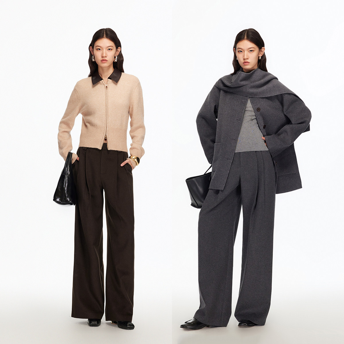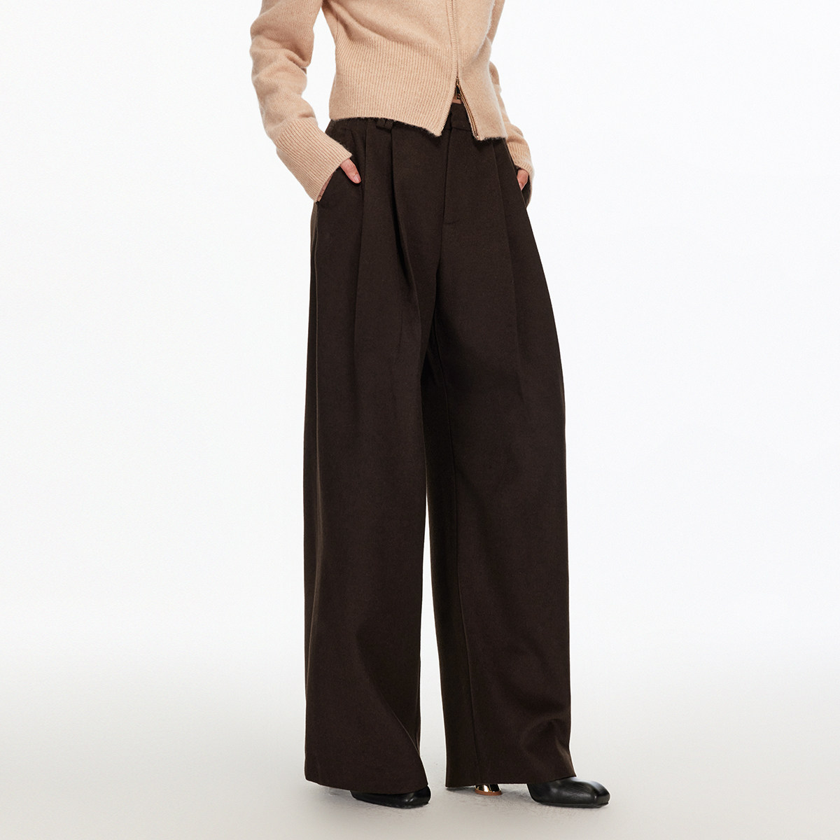 Vero Moda休闲裤女2025冬季新款含绵羊毛宽松垂坠直筒裤325426002