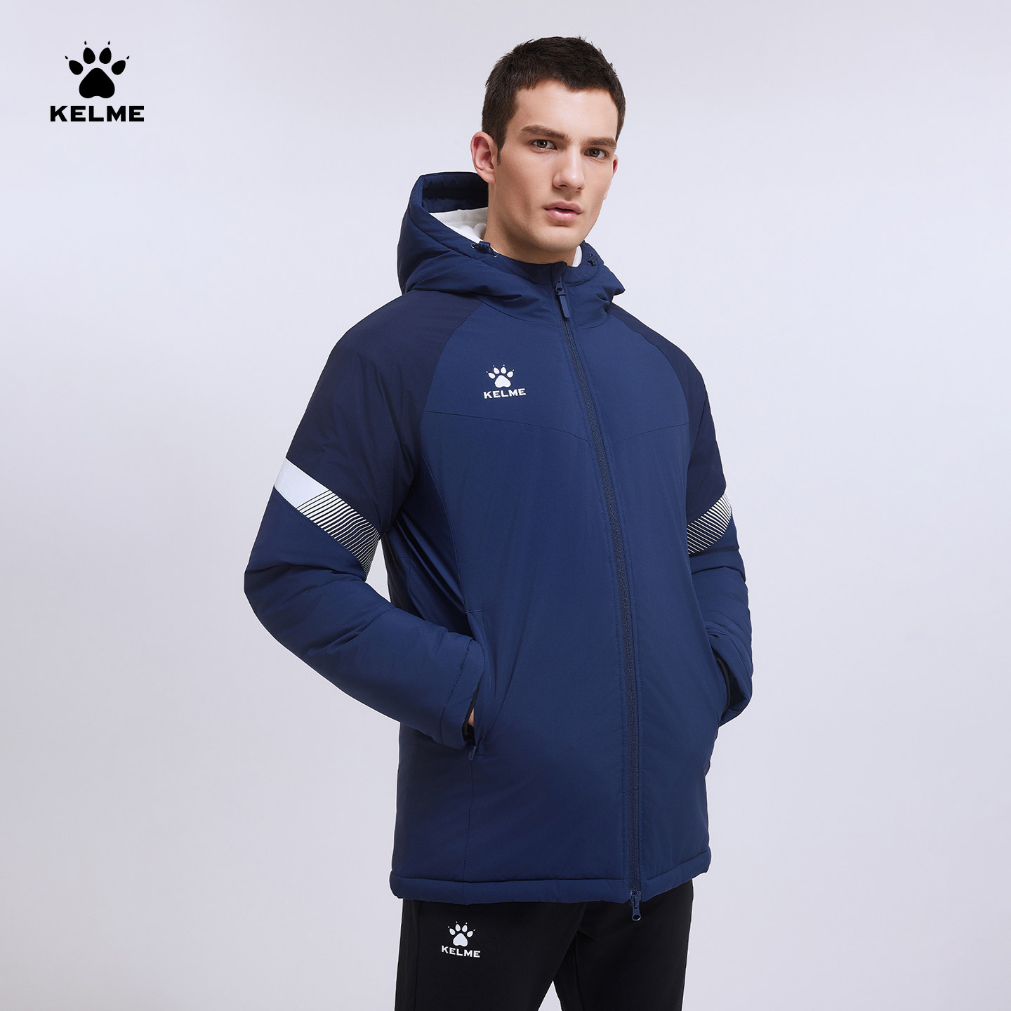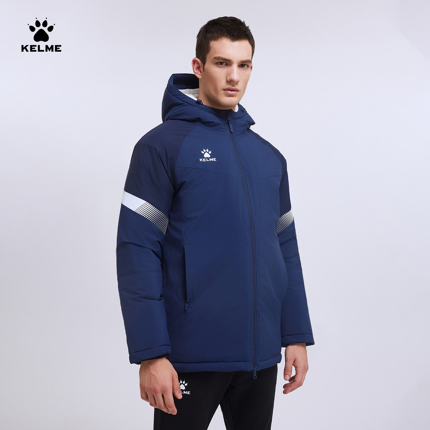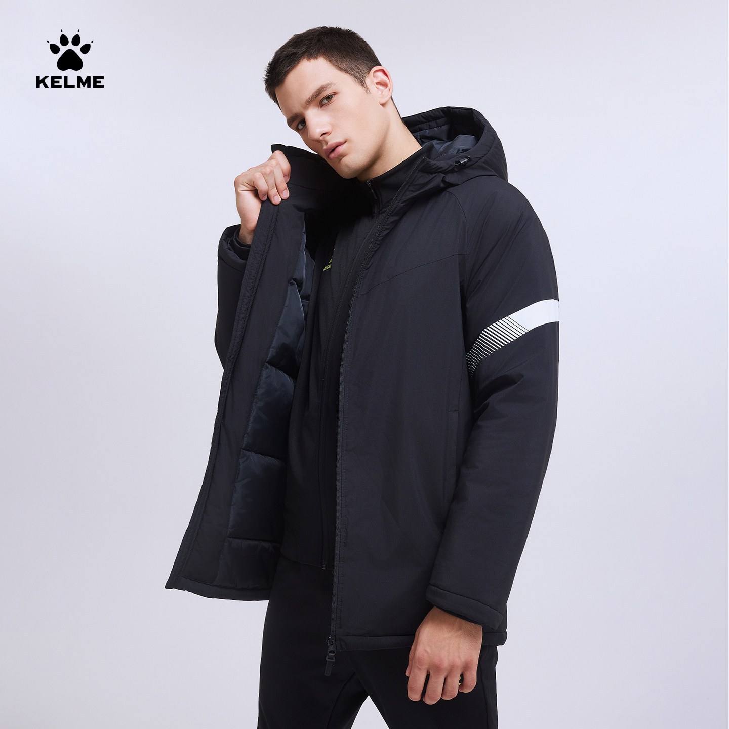卡尔美中长款运动棉衣男2025冬季新款体育生足球训练保暖棉服外套