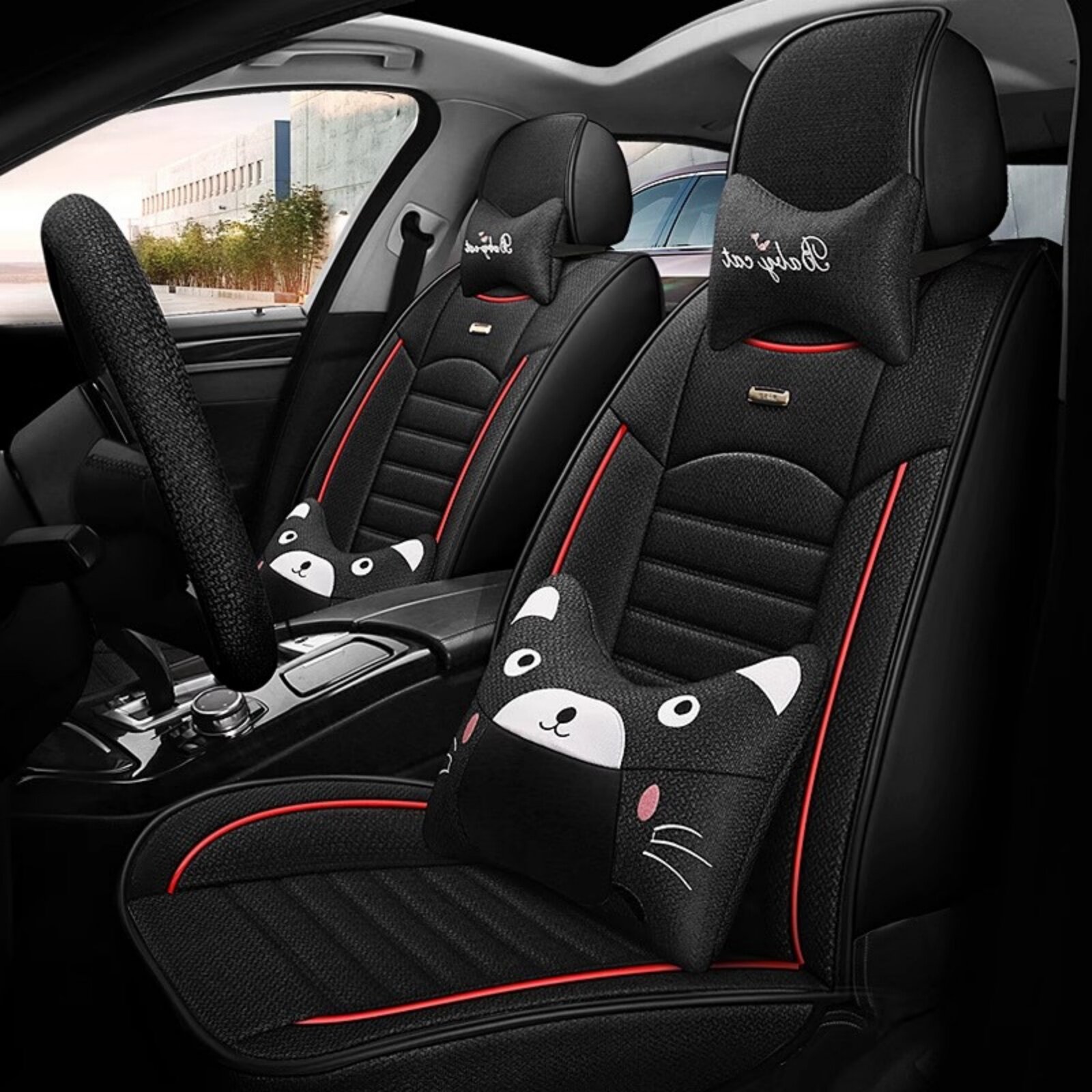 无靠背三件套亚麻单片后排汽车坐垫全包布艺四季通用简约驾驶座垫