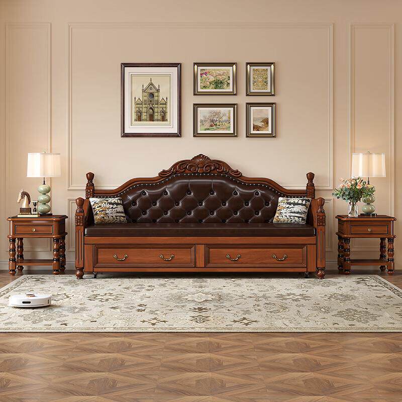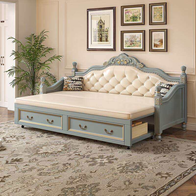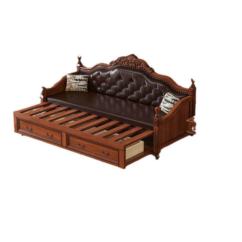 美式实木沙发床推拉可折叠两用欧式坐卧伸缩多功能客厅双人小户型